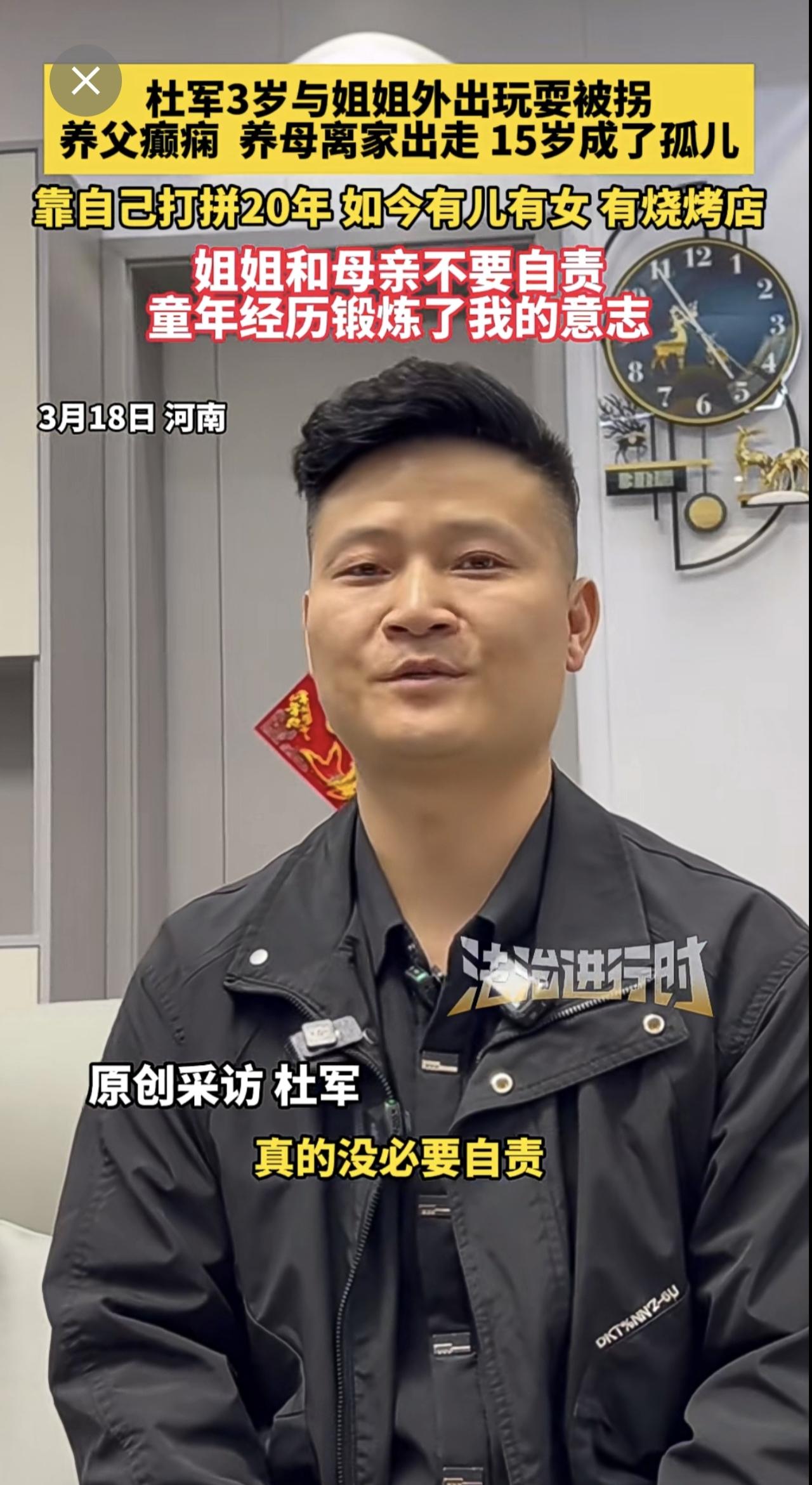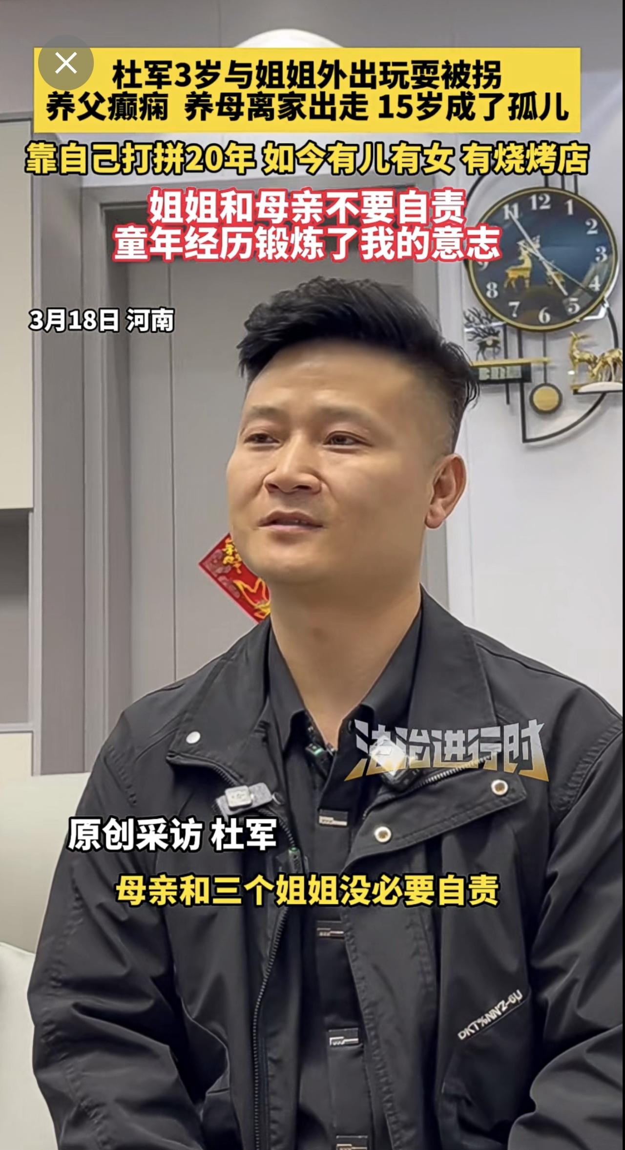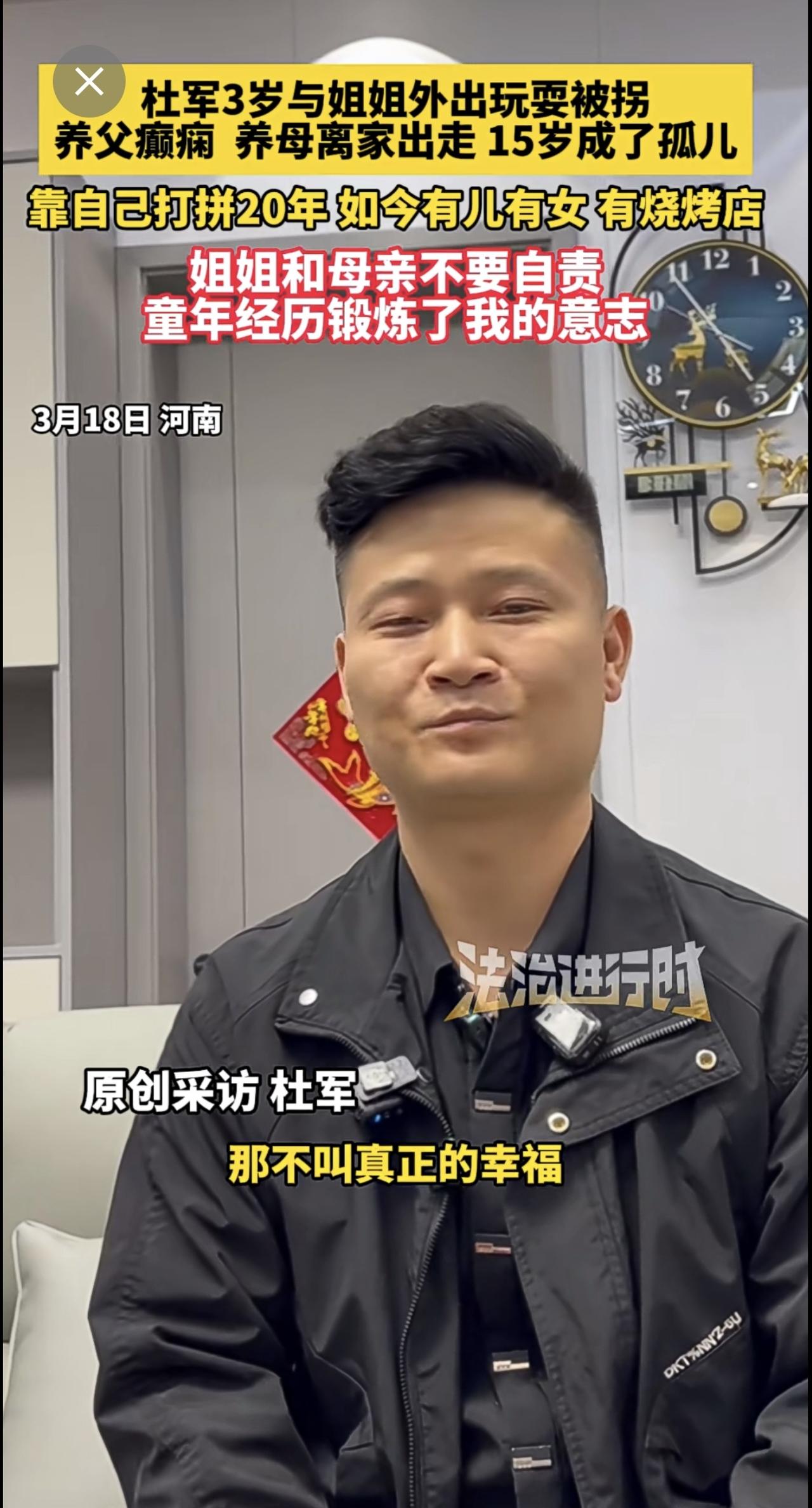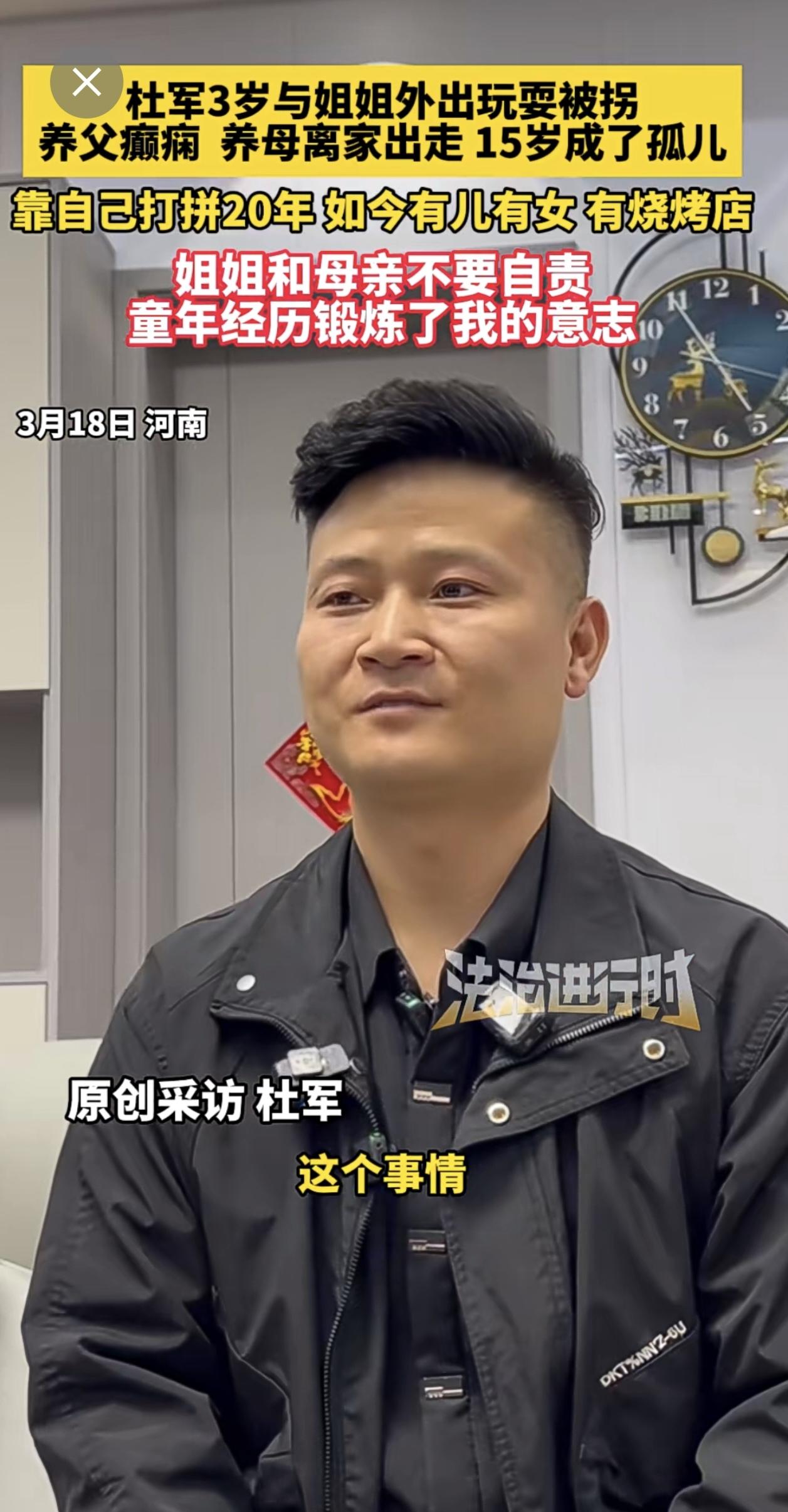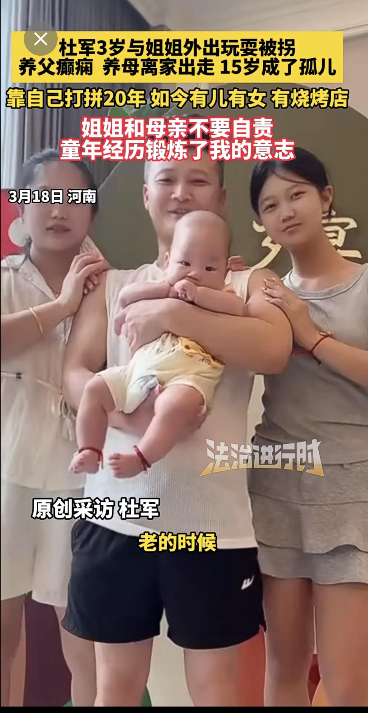 杜军3岁与姐姐外出玩耍被拐,养父癫痫 养母离家出走 15岁成了孤儿,靠自己打拼20年 如今有儿有女 有烧烤店,姐姐和母亲不要自责,童年经历锻炼了我的意志(记者越栋炜)