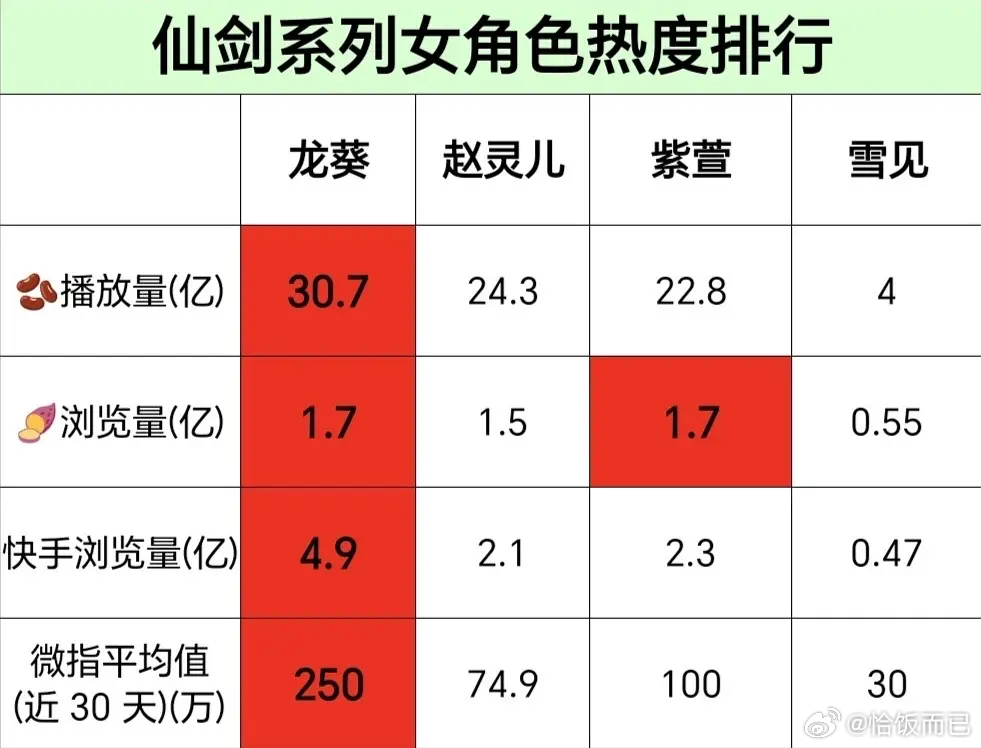 仙剑系列女角色(龙葵 赵灵儿 紫萱 雪见)热度排名