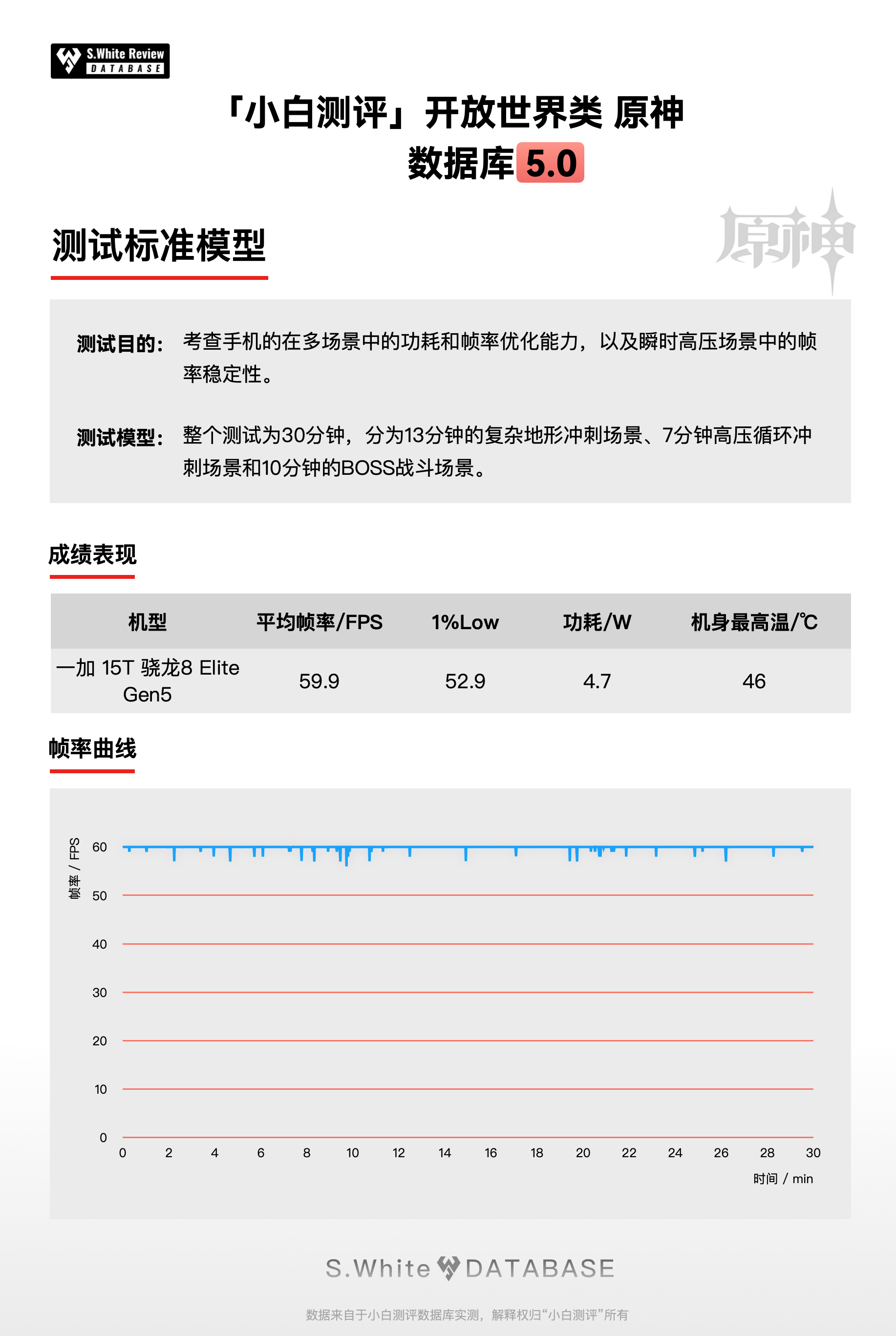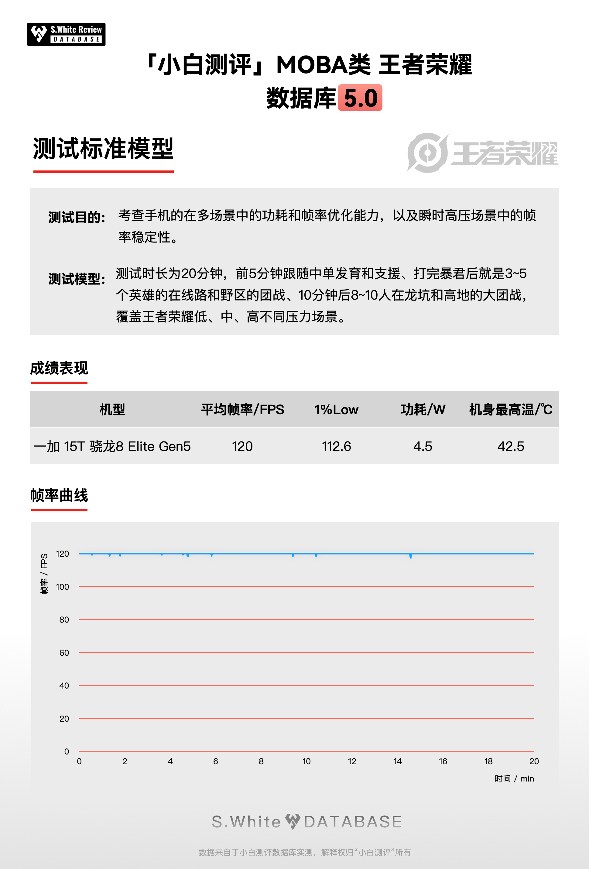 「测试场景说明」游戏性能测试分为三类游戏的多场景和两种超高压游戏场景,核心考验手机在不同场景的综合优化表现,以及手机的温升变化情况。