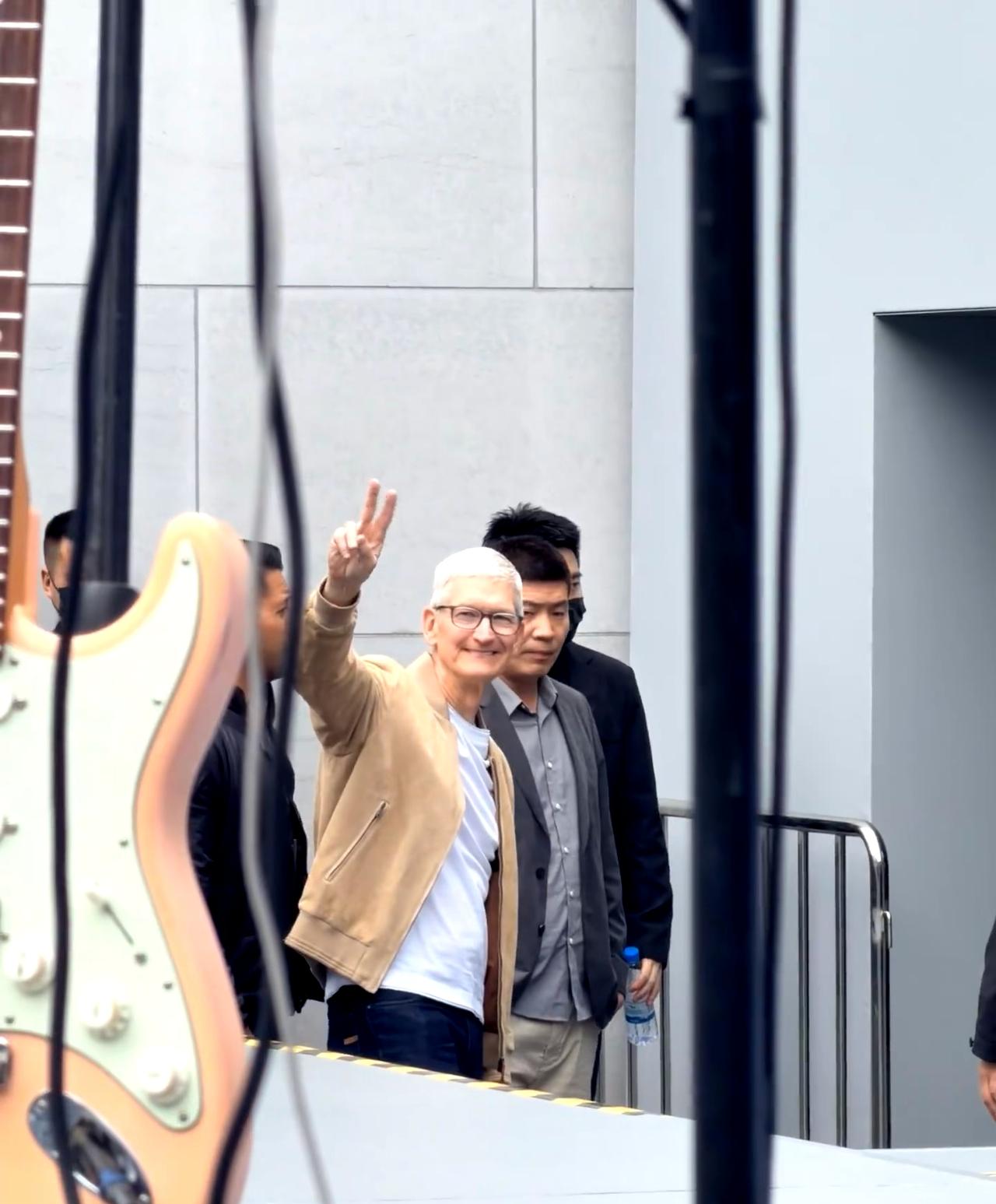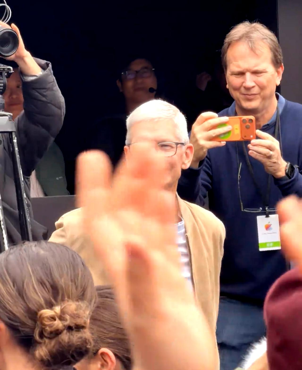 库克:看,这是我的新手机! 看出来库克今天看50周年演出心情很好哈哈哈,多次朝观众席比耶。他还开心地向我们展示自己的手机。