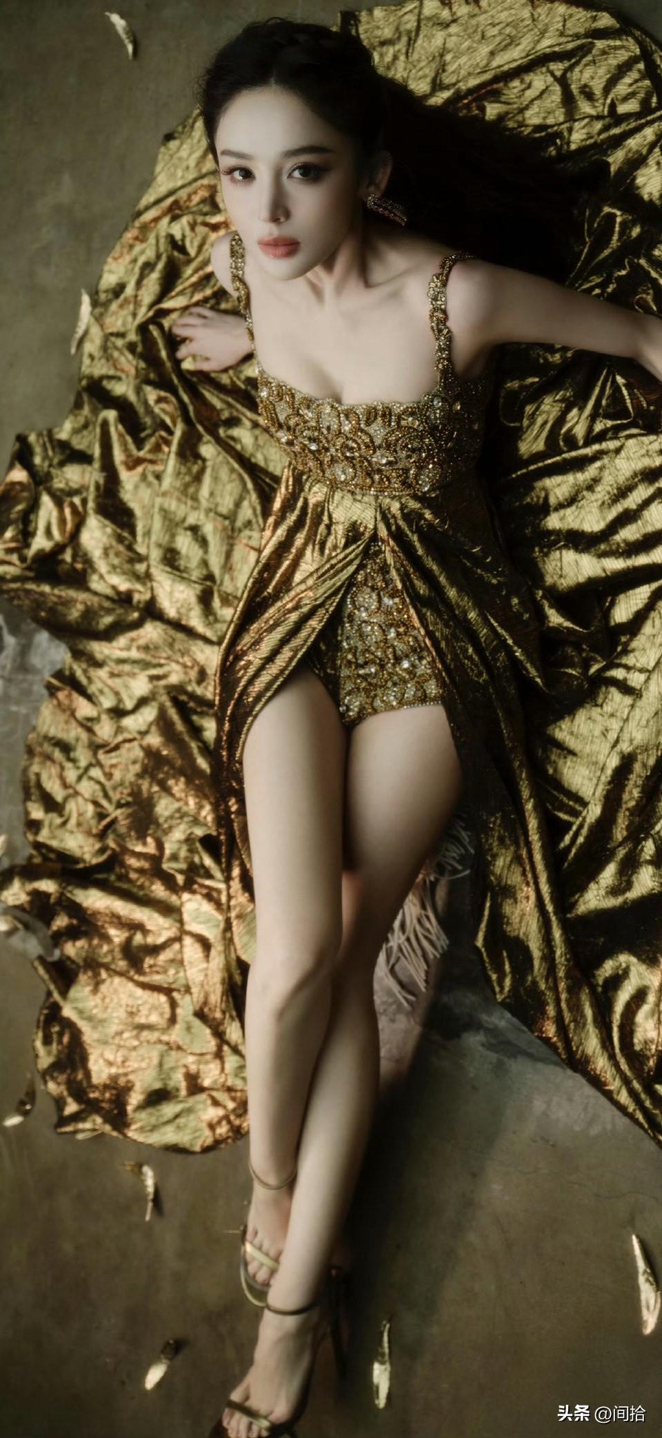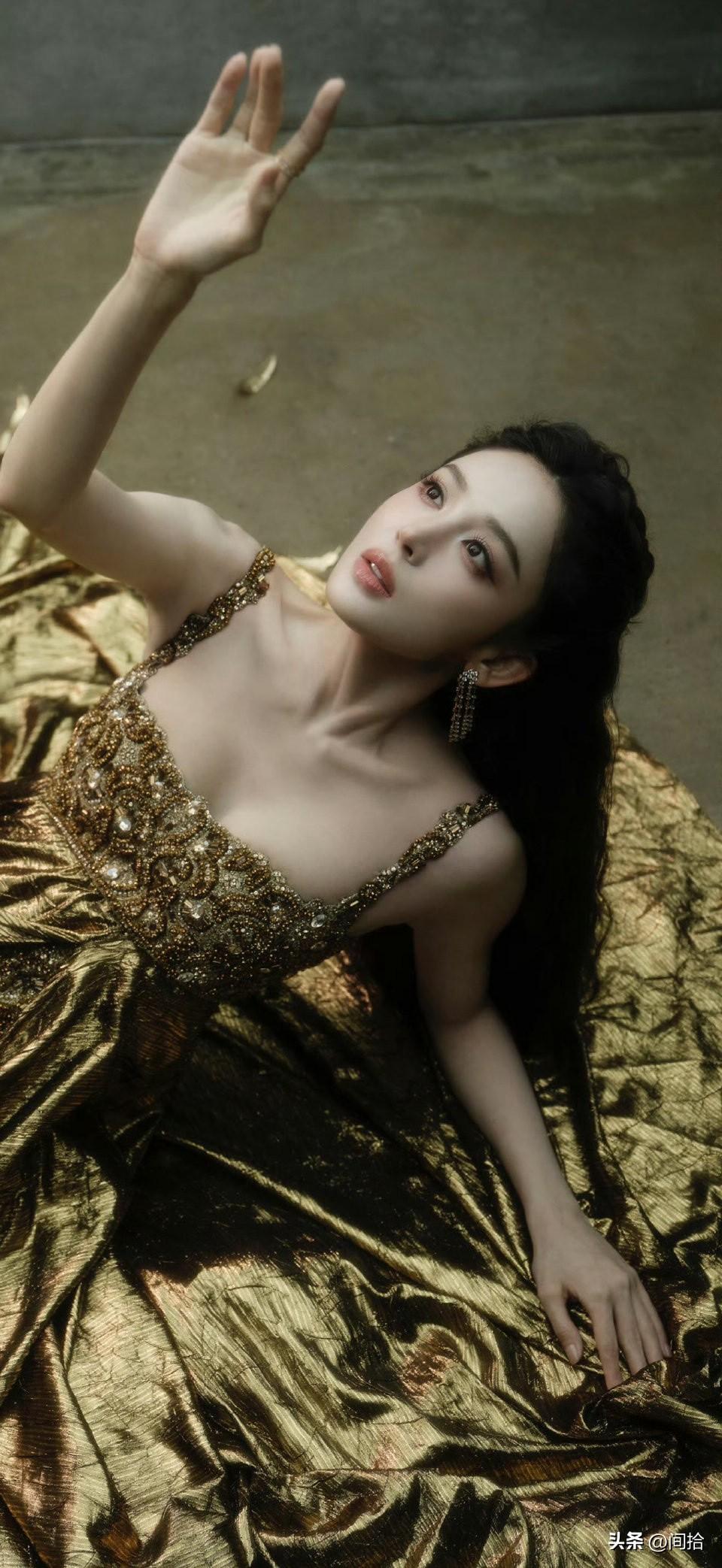 古力娜扎这次真的赢麻了!她身着金色鎏金吊带晚礼服,优雅地躺在地上,那画面简直绝了