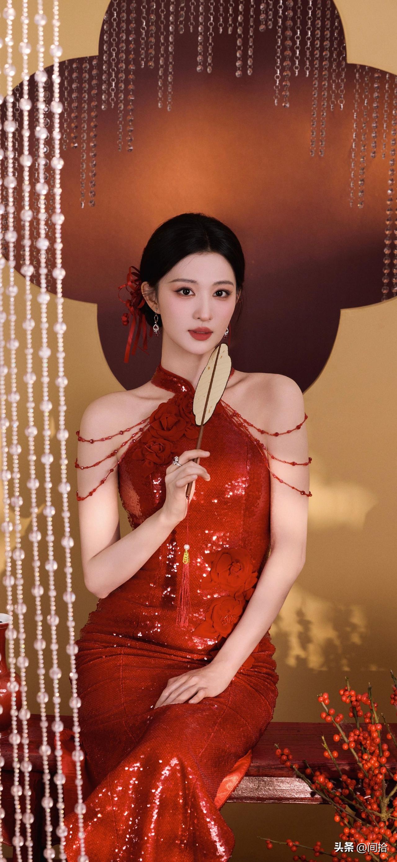 还有发箍配独特红裙,跳舞时古典与爵士融合,“妖”得别具一格。这么绝的红衣造型,当壁纸真是一眼惊鸿!