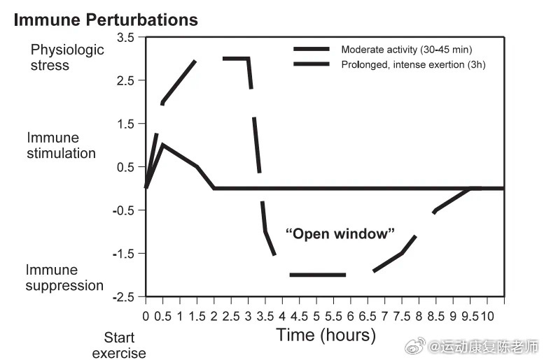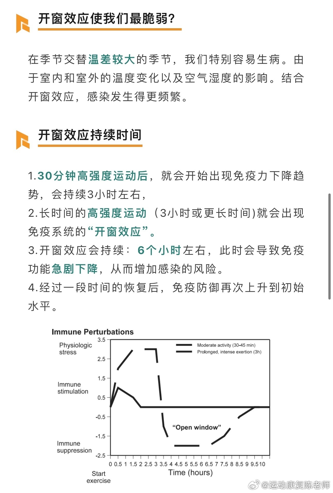 积极运动为啥还容易生病 天气暖和了,是不是又立了要运动的flag?不知道你们身边有没有这样的朋友,在高强度运动后会,特别容易身体不适甚至发烧,这就要说到我们今天要讲的——运动后免疫系统的开窗效应⚠️
