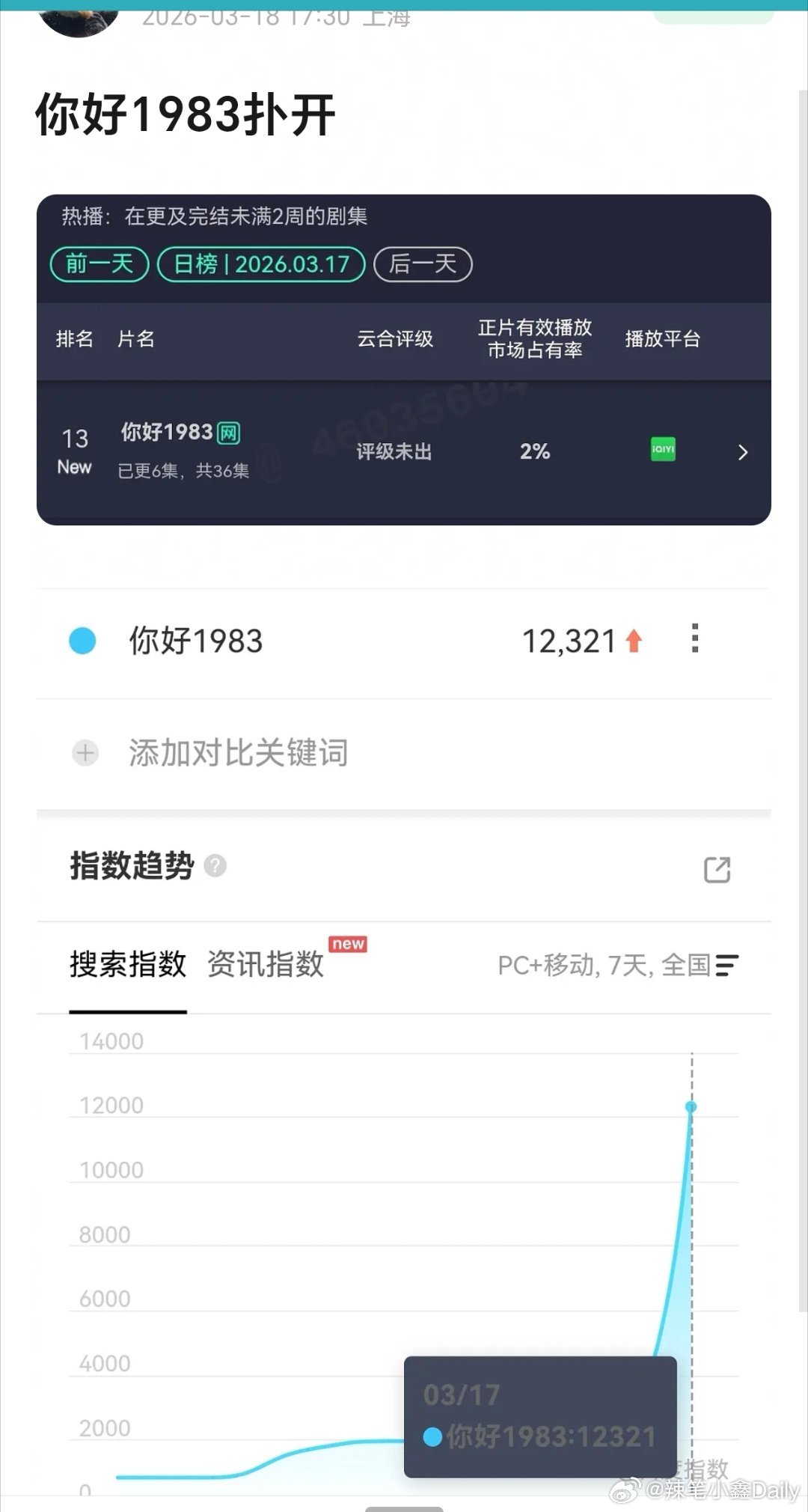 周也演技实话实说,在她身上感受不到任何情绪波动,感觉她演戏要么是念台词,要么就五官乱飞,难怪电视剧周也你好1983 热度一直上不去,这种角色如果给张婧仪演的话,百分百会出圈!