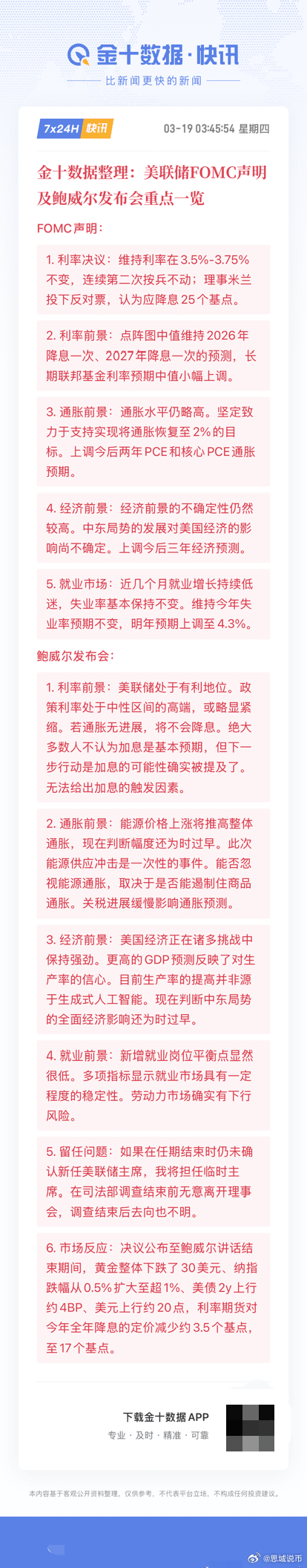 熬夜真熬不动,早上起来回看下昨天会议情况,归纳整理看我们需要看的内容:1.如果针对鲍威尔的指控不结束,不会主动离开委员会。非常强硬,就需要这种态度。2. 现在的利率处在中性和仅仅一点点紧缩的阶段。现在不会考虑加息的,没数据支持他们做出任何的指引和暗示。3.中东问题不确定性,虽是一次性事件,能否忽略要看情况(等于没说)。等于这次会议跟我们想的也是一样,不确定性还是很大,我美联储也判断不了,点阵图随便点一点,跟12月份大差不差,就下次再说吧,有点这个意味。总体来说没有太特别的,ppi超预期也削弱降息预期,会议我认为偏中性,不能算太鹰,至于为啥美股在发言期间开始下跌,我认为还是不确定性影响市场的情绪导致,跟发言关系不大,btc这里再反转冲高概率很低,观点还是不变,还没到做多的时候,周四周五都偏向下落。加速释放流动性的时候就是捡筹码和冲进去做多的时候,耐心!