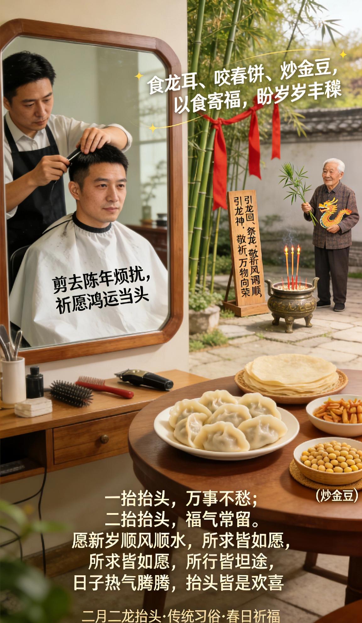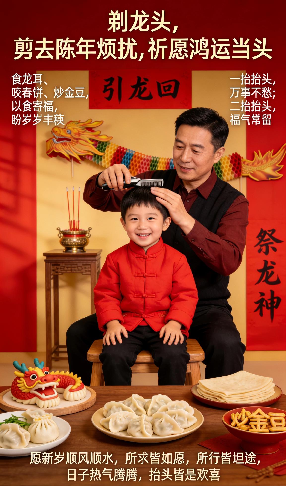 一抬抬头,万事不愁;二抬抬头,福气常留。愿新岁顺风顺水,所求皆如愿,所行皆坦途,日子热气腾腾,抬头皆是欢喜。 二月二龙抬头 传统习俗