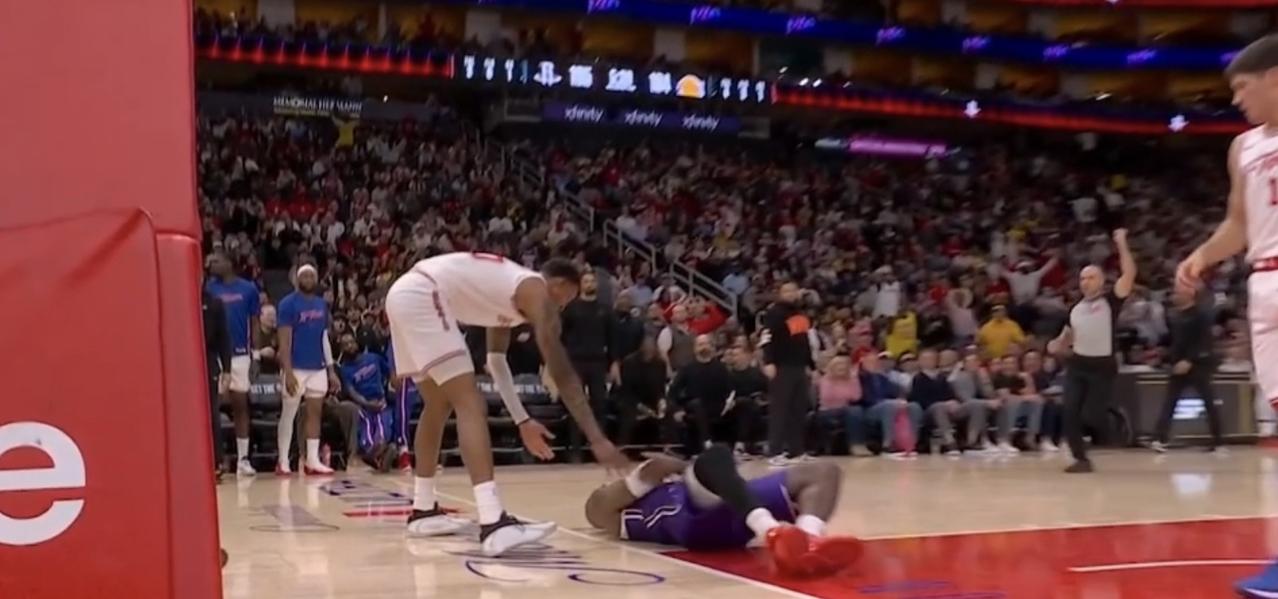 第四节5分39秒,41岁詹姆斯快下接东契奇传球准备暴扣,火箭小贾从身后直接一个大力犯规,将詹姆斯整个人扑倒在地上。 落地后,詹姆斯右手肘先着地,整个人捂着右手肘在地上痛苦挣扎,比赛进入暂停,裁判也赶紧去看了回放,确认是否有恶意犯规。 经过回放,裁判认为这只是一个普通犯规,给了两次罚球。 从慢动作回放看到,小贾从身后想要封盖,但没盖到,而是打在他的右肘上,并顺势将詹姆斯给带翻在地了。不过他的动作是一次性的,并没有出现故意拉拽等危险动作,而且詹姆斯落地时,他还想要保护一下,而不是把人按倒后直接走开。所以,裁判并没有吹恶犯。 不过庆幸的,詹姆斯缓了一下,还能坚持比赛,没有大碍。