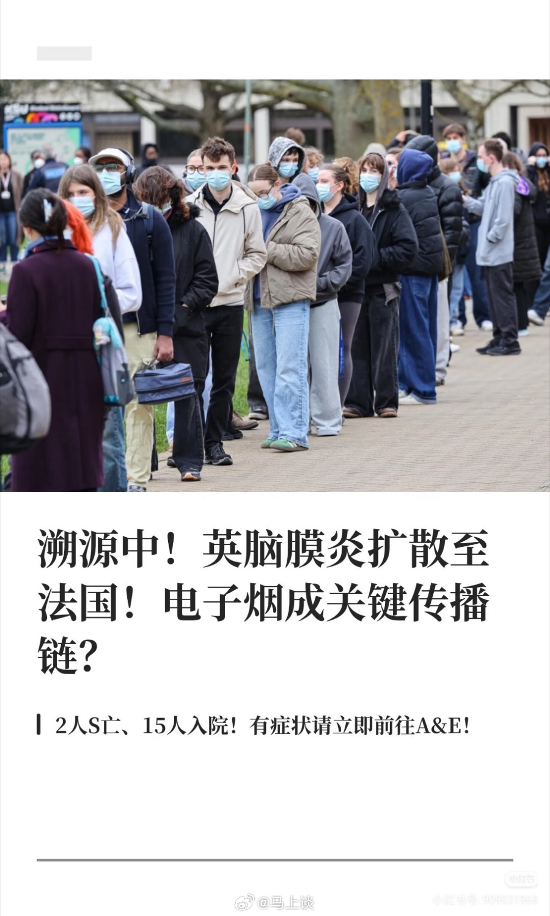 又是电子烟?英国夜店脑膜炎扩散到法国后再次传到伦敦。伦敦第一例脑膜炎是个孩子,目前英国脑膜炎疫情已致2亡11病危。如何防备?👇🏻