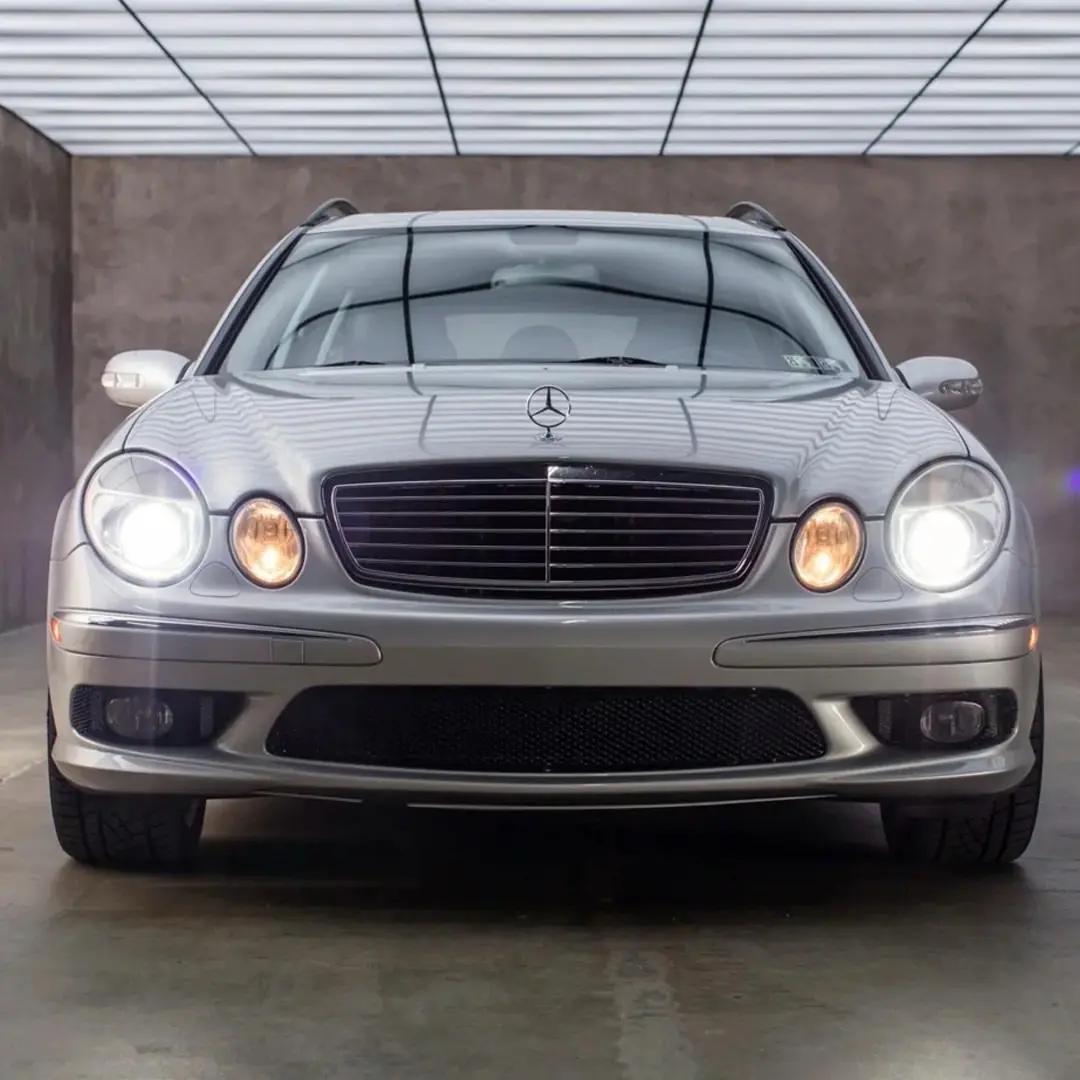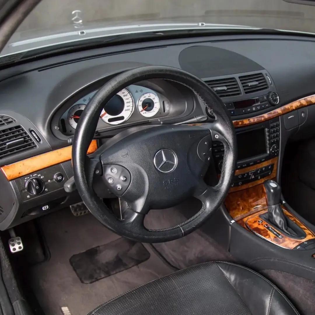 2005年,梅赛德斯-奔驰E55 AMG旅行版以一种近乎“反常识”的方式登上舞台:外表低调克制,却隐藏着足以撕裂时代的性能实力。整车采用Brilliant Silver银色车漆搭配Charcoal深色真皮内饰,辅以Premium与Lighting套件,带来双氙气大灯、玻璃天窗、COMAND导航系统,以及带加热与通风功能的多轮廓运动座椅,在豪华与科技之间取得微妙平衡。动力层面,这台车搭载一台5.4升机械增压V8发动机,最大功率约476马力(约350千瓦),峰值扭矩高达700牛·米,匹配AMG Speedshift五速自动变速箱。这样的数据放在今天依然不显过时,而在当年更是堪称“性能怪兽”。0-100公里/小时加速仅约4.7秒,却被包裹在一台看似理性的旅行车之中。更重要的是,它不仅快,还极具生活气息。18英寸AMG轮圈、Keyless Go无钥匙进入、Harman Kardon音响、电动尾门以及可折叠的第三排座椅,让这台车在性能与家庭之间自由切换。那个年代的AMG,还没有完全走向张扬,而E55 AMG旅行版,正是“低调暴力”的最佳注解——它不试图取悦所有人,却总能让懂它的人一眼沦陷。奔驰E55 AMG 汽车知识分享 经典情怀老车