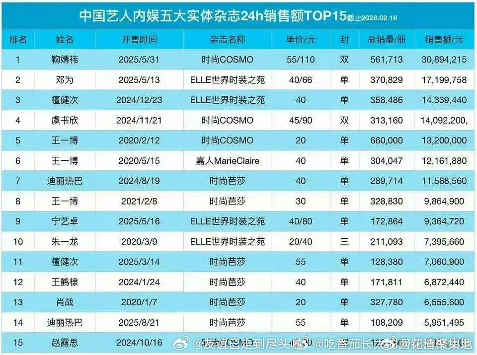 张凌赫ELLE销售战报🈶15分钟销量破23w+本,销售额破1000万,妥妥的流