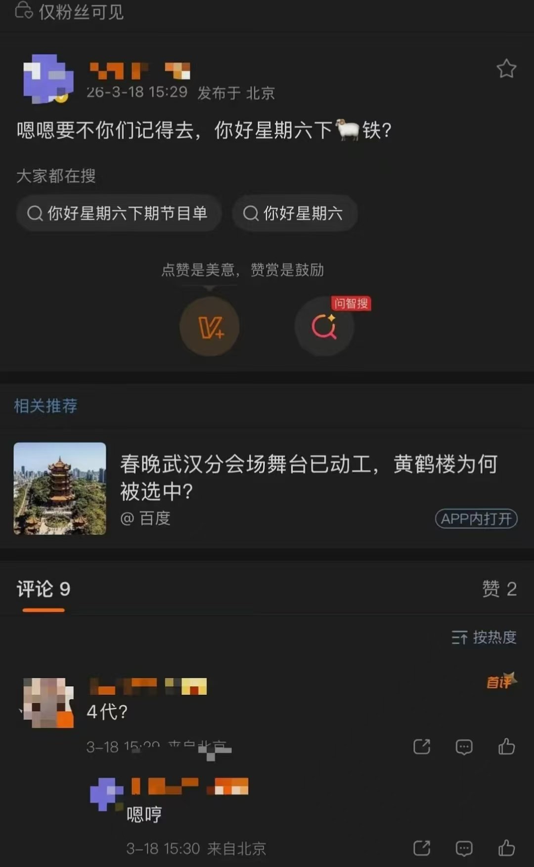 网传TF四代一班要参加你好星期六网传TF四代一班要参加hi6 网传TF四代一班要参加你好星期六了,上次微博实名是不是也是这个原因呢~