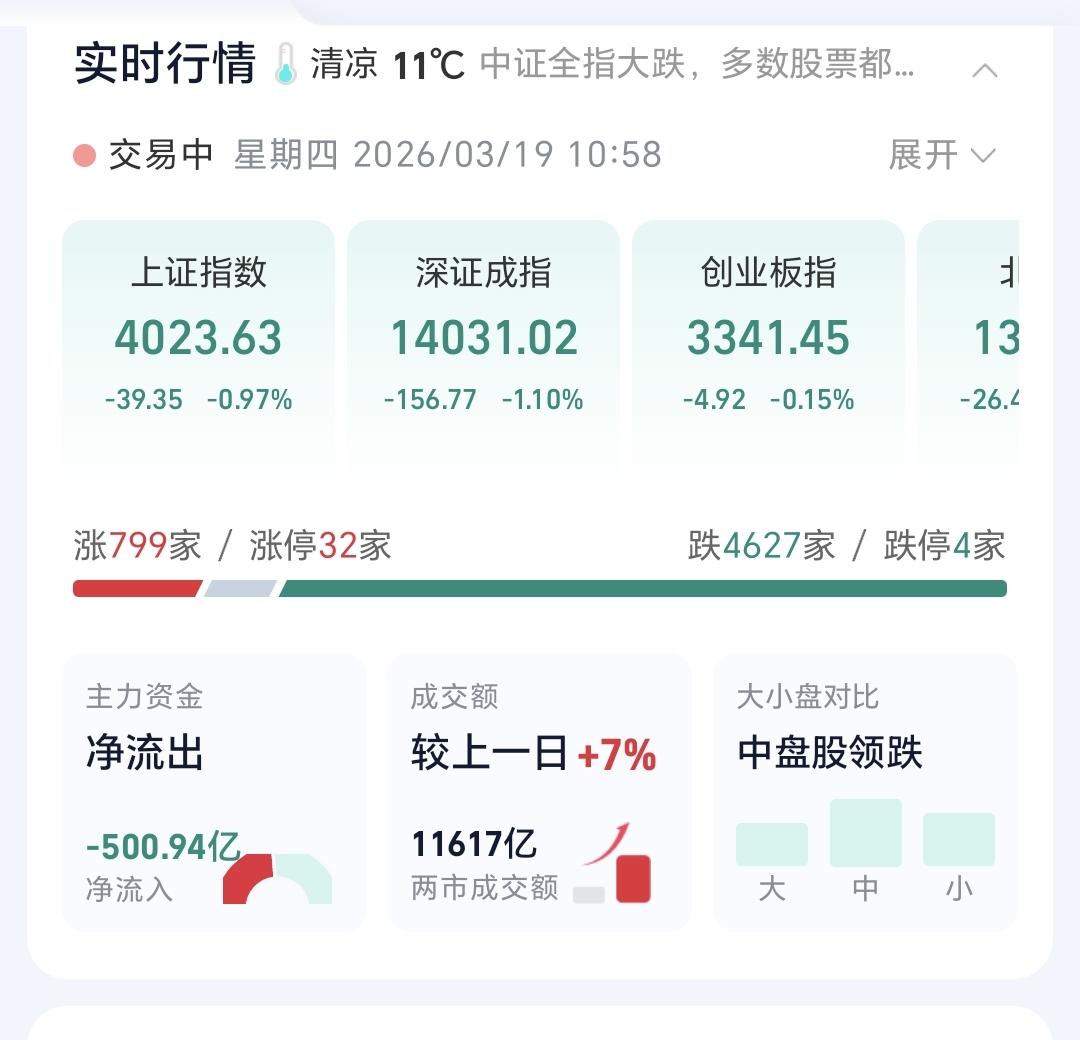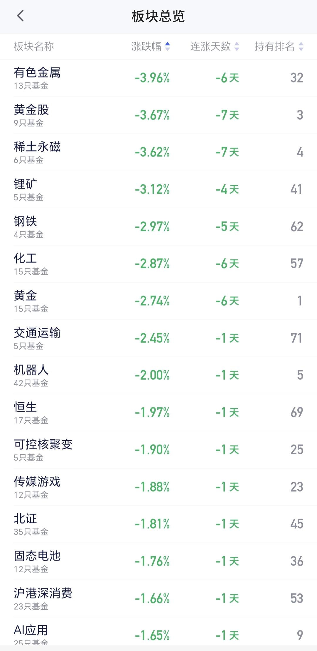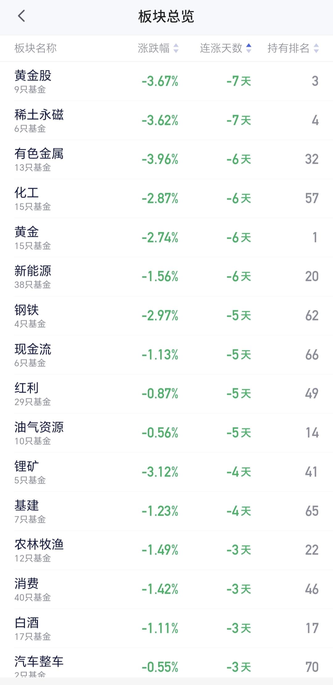 基金:这两个板块连续下跌了六天 今天市场低开以后小幅度震荡,盘中最高4042点,最低4014点,上下只有28个点的震荡幅度,需要注意的是,盘中最低4014点已经创4197点以来的新低,后面继续观察会不会跌破4102点,以及3977点至3983点的缺口会不会被回补。 现在黄色线还是在蓝色线的下方,但两条线之间的敞口已经缩小,这是一个好的现象,如果两条线之间的敞口能够进一步缩小,下跌幅度不排除能够继续缩小。 两市累计成交11617亿,相比于昨天同期放量了7%,市场上涨799家,下跌4627家,上涨家数少于下跌家数,涨停32家,跌停4家,主力资金净流出500亿,今天到现在为止的跌停家数只有四家,这说明盘面根本没有出现恐慌的现象。 整个市场上涨幅度最大的三个板块是:煤炭板块,电力板块,通信板块,下跌幅度最大的三个板块是:有色金属板块,黄金板块,稀土永磁板块,黄金股板块和稀土永磁板块连续下跌了七个交易日,有色金属板块,化工板块和新能源板块也已经连续下跌了六个交易日。 持有基金现在盘中估值亏损了5376元,盈利金额最大的三个板块是:创新药板块,5G板块,创业板指,亏损金额最大的三个板块是:证券板块,芯片半导体板块,白酒板块。 有色金属板块现在盘中估值下跌了3.96%,连续第六个交易日下跌,持有人数在所有板块当中排名第32位。 有色金属板块日线级别处于短期下跌通道中,近期观察会不会继续下跌跌破这个短期下跌通道的下轨线,进入加速下跌走势,想进场的人需要耐心等待上涨突破这个下跌通道的上轨线,再考虑要不要进场。 有色金属板块周线级别处于上涨通道中,距离上涨通道的下轨线还有一段空间,长线持有的人可以继续持有。如果有效破位这个周线级别上涨通道的下轨线,长线持有的人需要注意风险。 发光板块现在盘中估值下跌了2.87%,是连续第六个交易日下跌,持有人数在所有板块当中排名第57位。 化工板块日线级别处于下跌通道中,今天的下跌最低就打到了这个下跌通道的下轨线上,想进场的人需要耐心等待上涨突破这个下跌通道的上轨线,到时候再考虑要不要进场。 化工板块周线级别处于上涨通道中,本周的下跌幅度比较大,是一个快速而猛烈的下跌。近期观察会不会跌破这个周线级别上涨通道的下轨线,如果有效破位了这条下轨线,长线持有的人需要注意风险。 机器人板块现在盘中估值下跌了2%,持有人数在所有板块当中排名第五位。 机器人板块日线级别处于短期下跌通道中,距离下跌通道的下轨线比较近,这个地方持有的人可以继续持有,想进场的人需要耐心等待上涨突破这个下跌通道上轨线的时候,再考虑要不要进场。 机器人板块周线级别处于上涨通道中,现在的位置距离上涨通道的下轨线比较近,近期观察是跌破这个上涨通道的下轨线,还是在这里止跌企稳,如果有效破位这个上涨通道的下轨线,长线持有的人需要注意风险,如果能够在这里止跌企稳,长线的人可以考虑要不要进场。 今天的黄色线在蓝色线下方,以及成交量的小幅度放大,注定了是一个震荡的走势,大幅度上涨和大幅度下跌的可能性都不大,这样的情况下,我们是多看少动,真正的方向选择以后,涨跌的幅度都会加大,真正的方向选择向下以后,下跌的幅度会让你感到害怕,继续观察市场的方向。 花1秒钟点赞,花30秒钟评论,就是对我最大的支持,谢谢大家的支持。