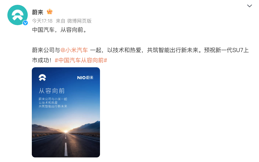 多家企业预祝新一代SU7上市成功,这是雷军在展示自己的人脉。