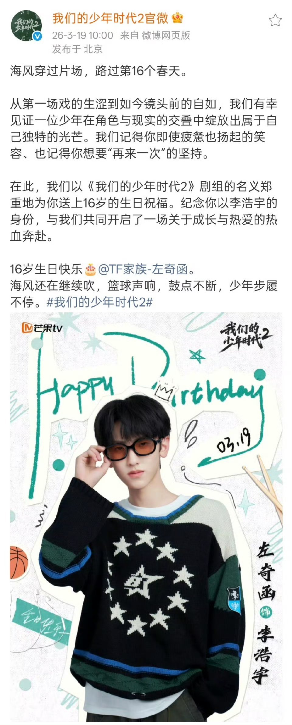我们的少年时代2祝左奇函生日快乐左奇函生日快乐,期待左奇函李浩宇!左奇函生日快乐