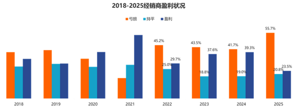 中国汽车流通协会2025年经销商生存报告重磅出炉,1375份有效问卷揭开行业最残酷真相:仅44.3%经销商完成年度销量目标,盈利占比暴跌至23.5%,亏损比例飙升至55.7%,车市彻底进入深度洗牌期。