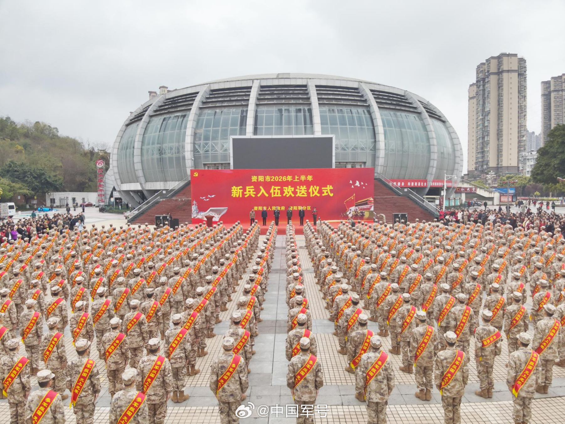 【未来加油!资阳欢送春季新兵】近日,四川资阳体育广场锣鼓喧天,470余名新兵身披戎装、胸戴红花,告别家乡亲人。他们带着"三贤故里"的嘱托,奔赴军营淬炼成才,为国防事业贡献青春力量。致敬,祝福!青春在军营闪光(李帅 韦世铭 常志彬)