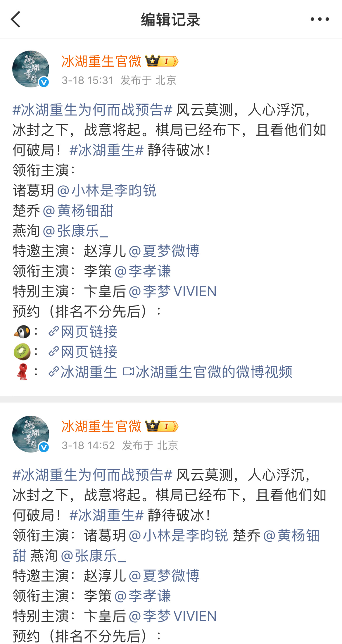 李昀锐粉丝发文诉求冰湖重生剧组,要求更正番位顺序,强调宣发要围绕一番男主李昀锐