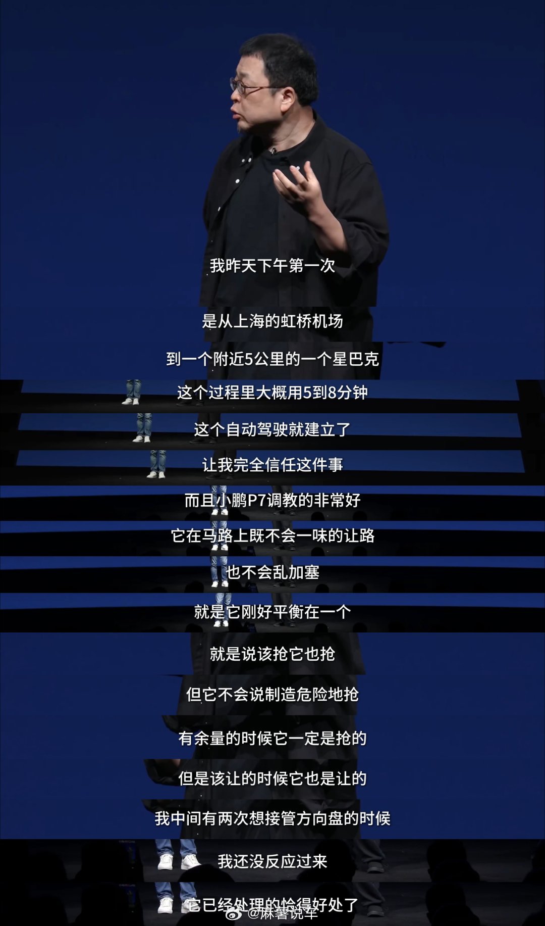 罗永浩称P7智驾开得比何小鹏好罗永浩现身小鹏P7发布会,试驾第二代VLA仅 5 分钟便建立完全信任,称赞其复杂路况游刃有余、驾乘丝滑,当场决定自费购买。他表示该智驾让 “没胆“的人也敢大胆开,还能缓解路怒症,甚至想提车后带妻子兜风,同时直言羡慕年轻 P7 车主,赶上时代红利,享受 “又好又便宜” 的智能出行时代。