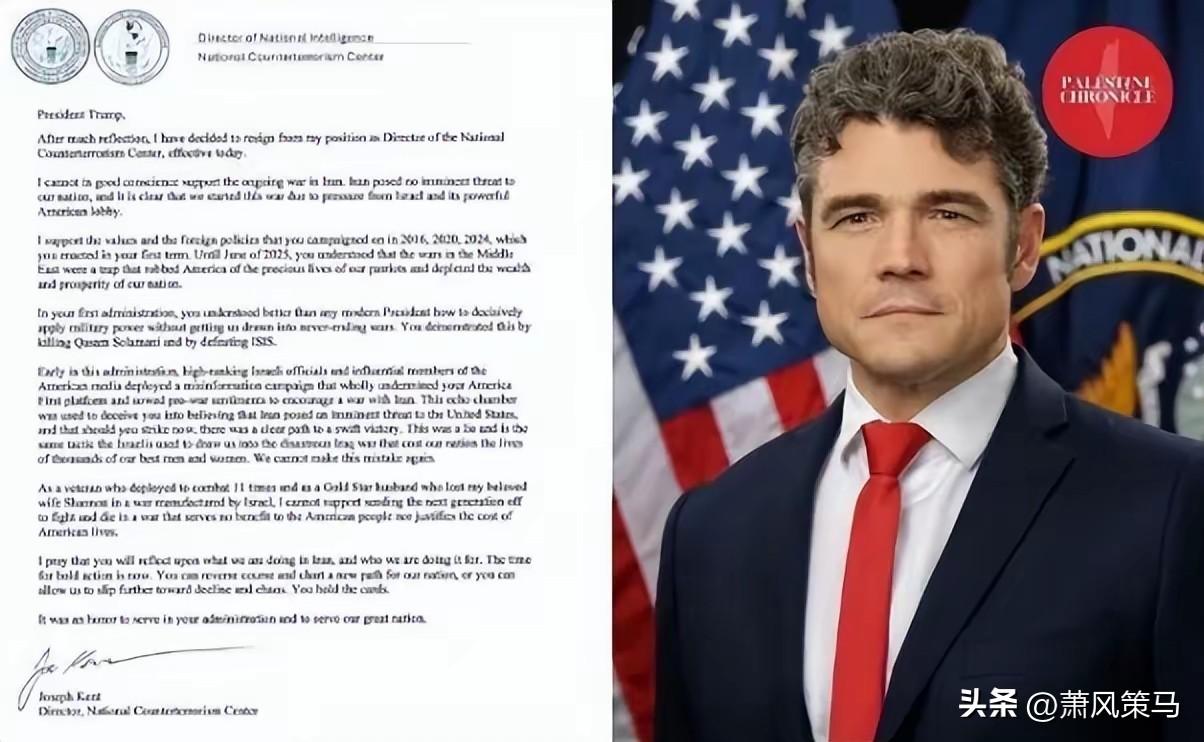炸锅!特朗普亲手提拔的反恐一把手乔·肯特,直接公开辞职反水,把白宫的底裤都扒光了!这位身经百战、痛失爱妻的高官,直言对伊战争毫无正义可言,伊朗根本无迫在眉睫威胁,开战全是以色列游说集团施压。 手握全美核心情报的高官倒戈,撕开美国战争谎言,白宫装死沉默,国会彻底分裂。对外打不动伊朗,对内众叛亲离,霸权强权被良知狠狠打脸,这场不得人心的战争,注定走向末路!