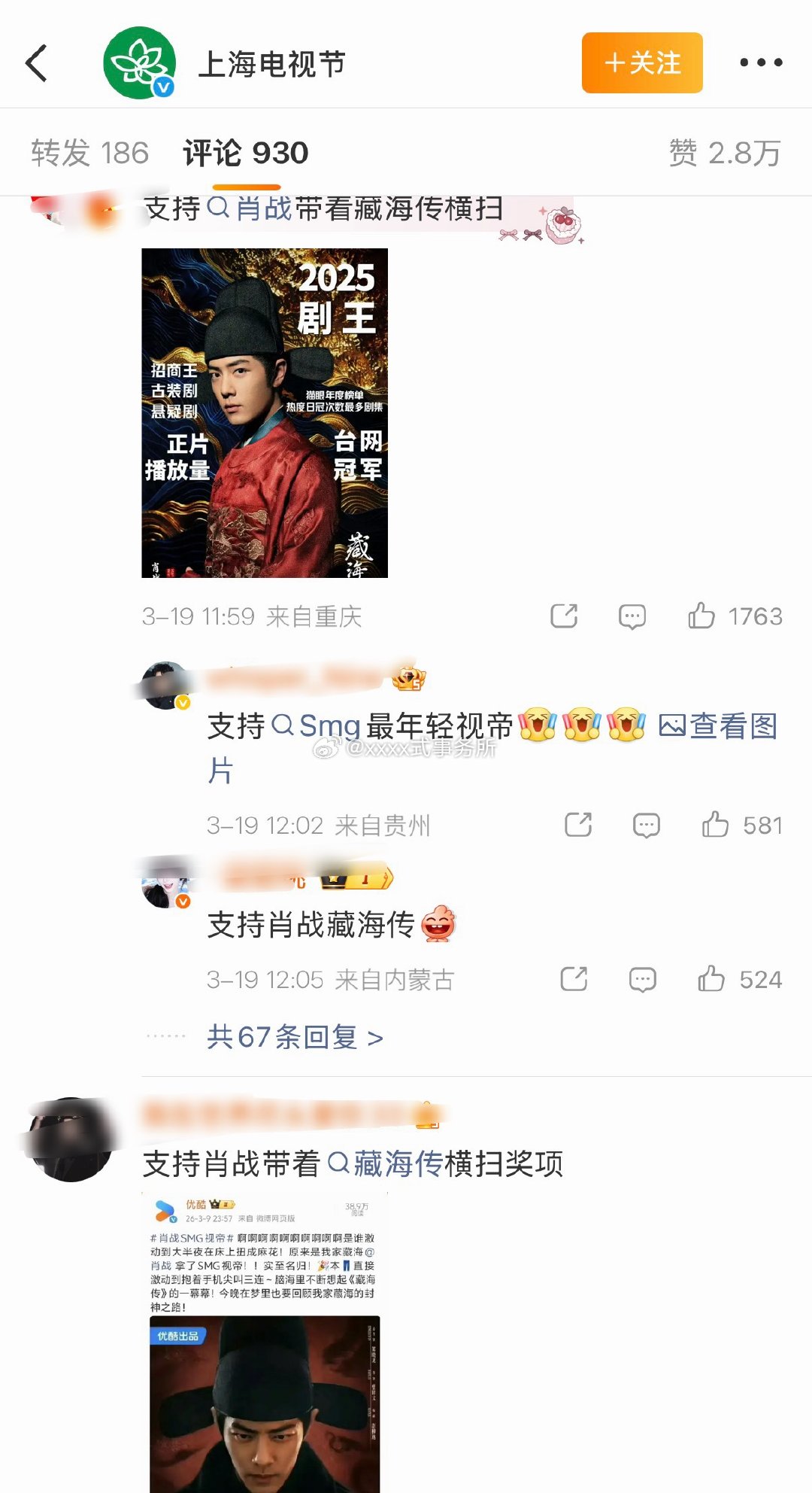 白玉兰官博提名 很多提名肖战藏海传和迪丽热巴利剑玫瑰