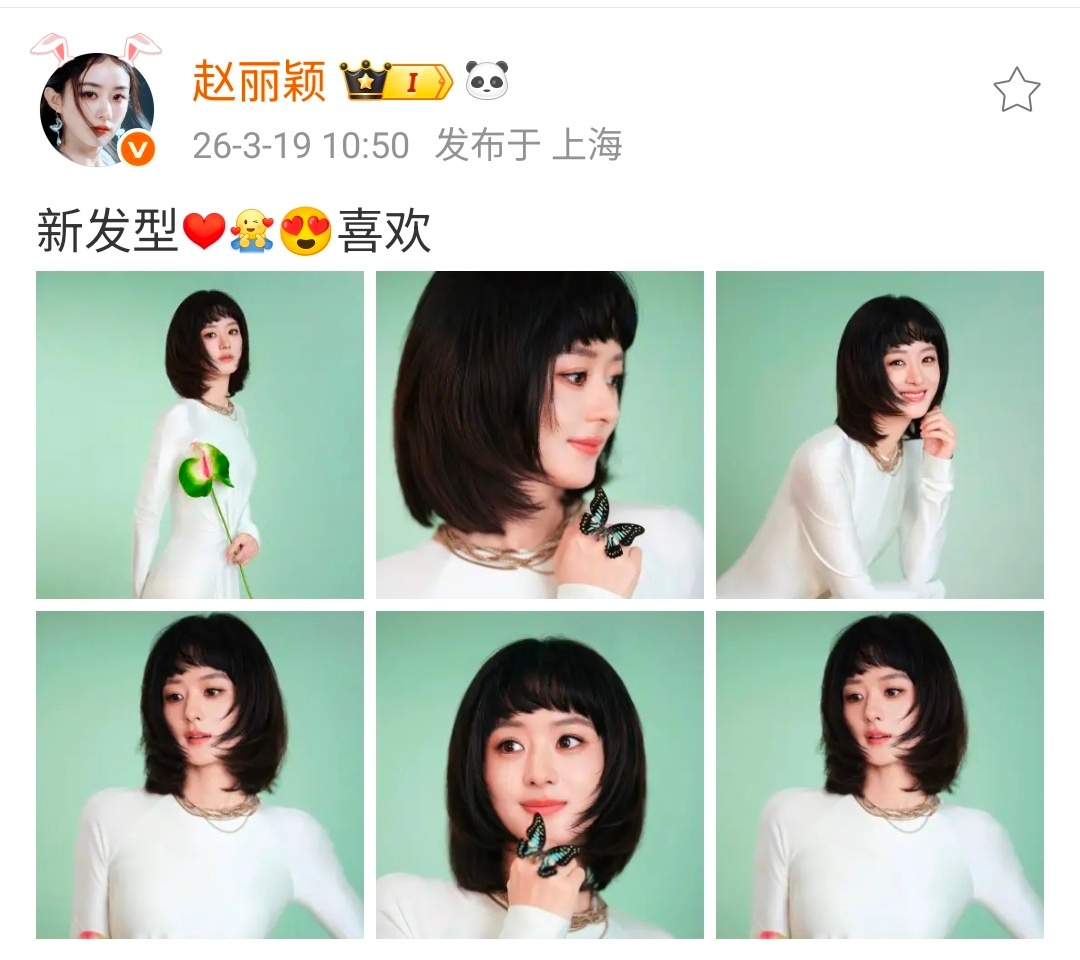 赵丽颖喜欢自己的新发型清澈又明媚!颖宝什么发型都好看!好精致好灵动请多多尝试新造