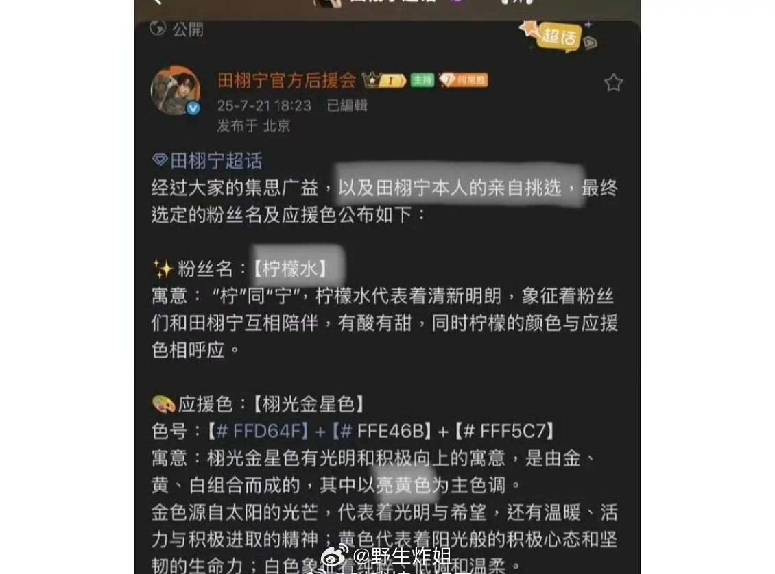 并且若若的宠物狗叫柠檬茶 但是田栩宁粉丝名字叫柠檬水