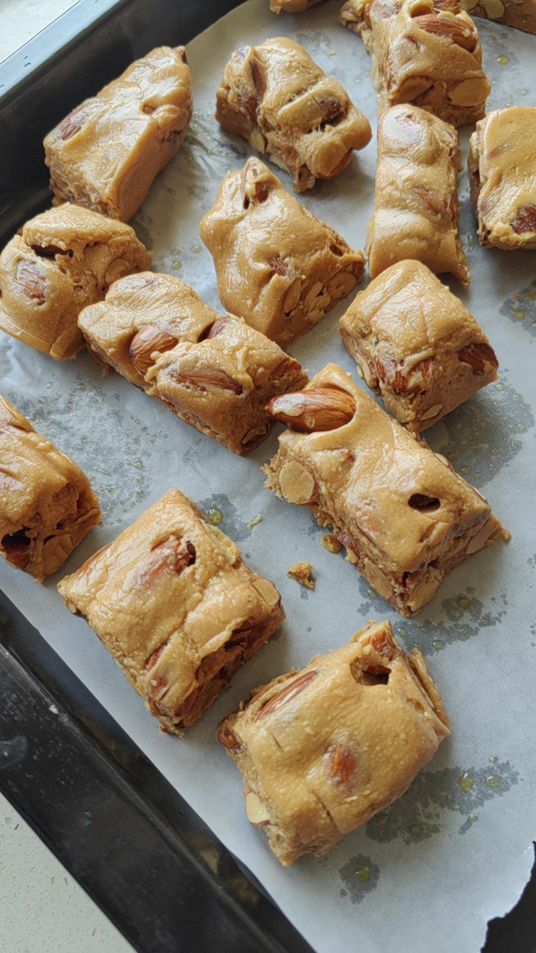 应孩子要求自制了海盐焦糖太妃糖,还是春节在朋友家吃过的,一百块1斤呢。但这根本难不倒我这巧手,买了材料,在网上找来配方,立即开做,哈哈,一次成功,虽然样子还有待改善,味道还不错。顺带做了绿豆糕,给孩子打包寄走[送自己一朵花]