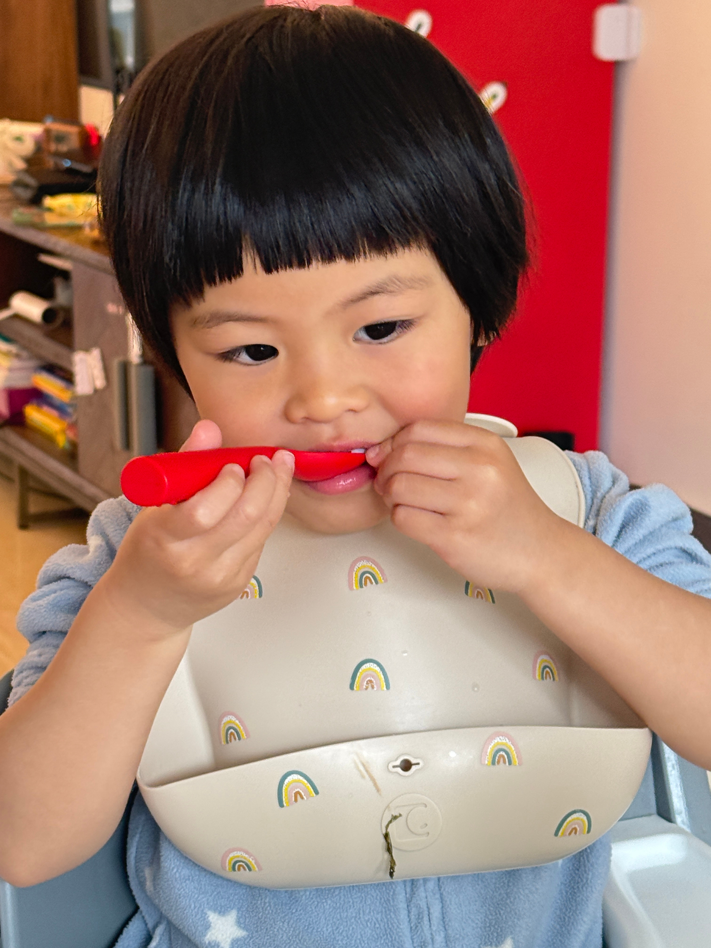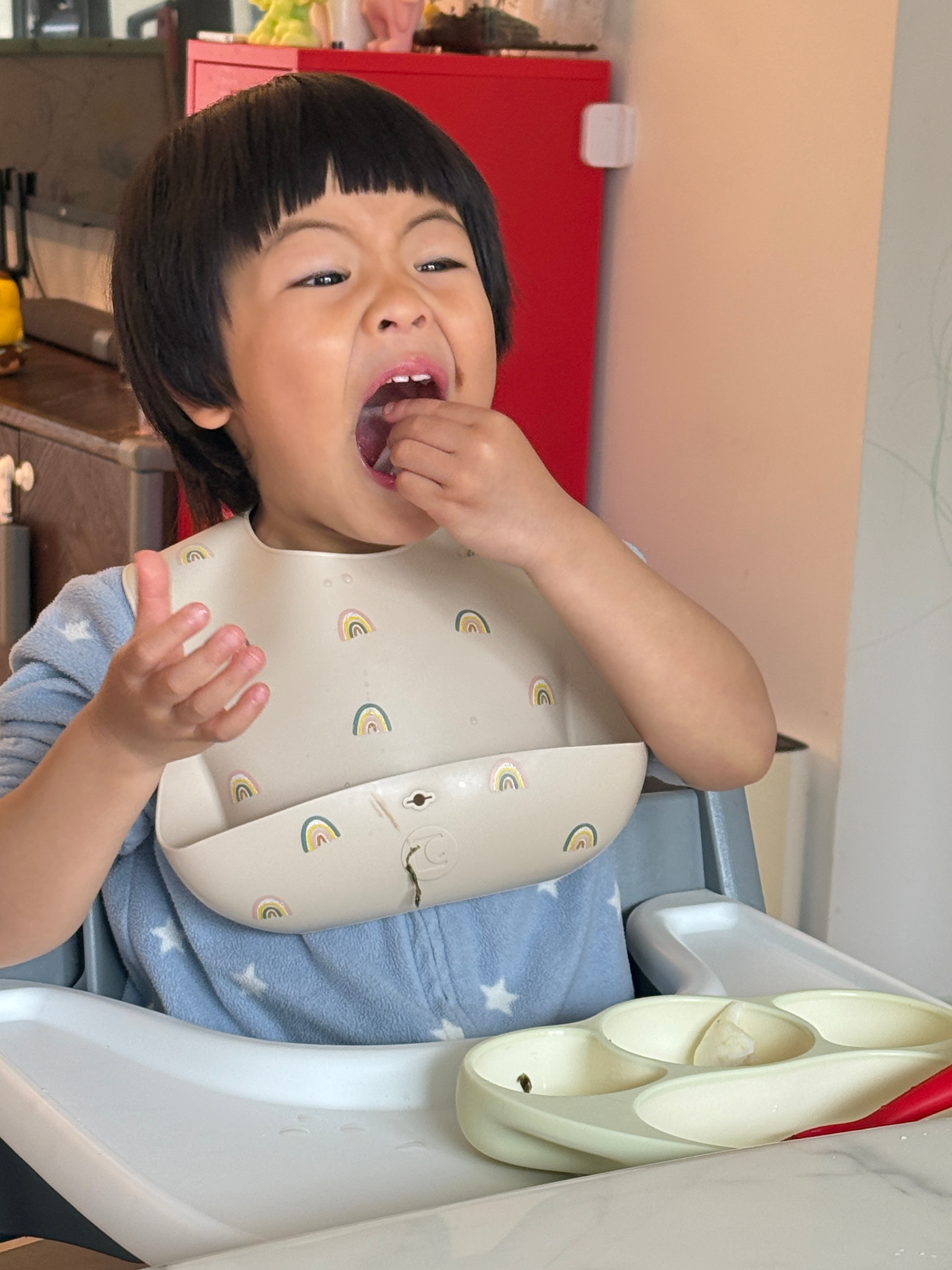 今天阿姨进化了,居然煮了五个鱼丸(阿姨自己的捞走了),终于每个人都可以吃到一粒属于自己的鱼丸了