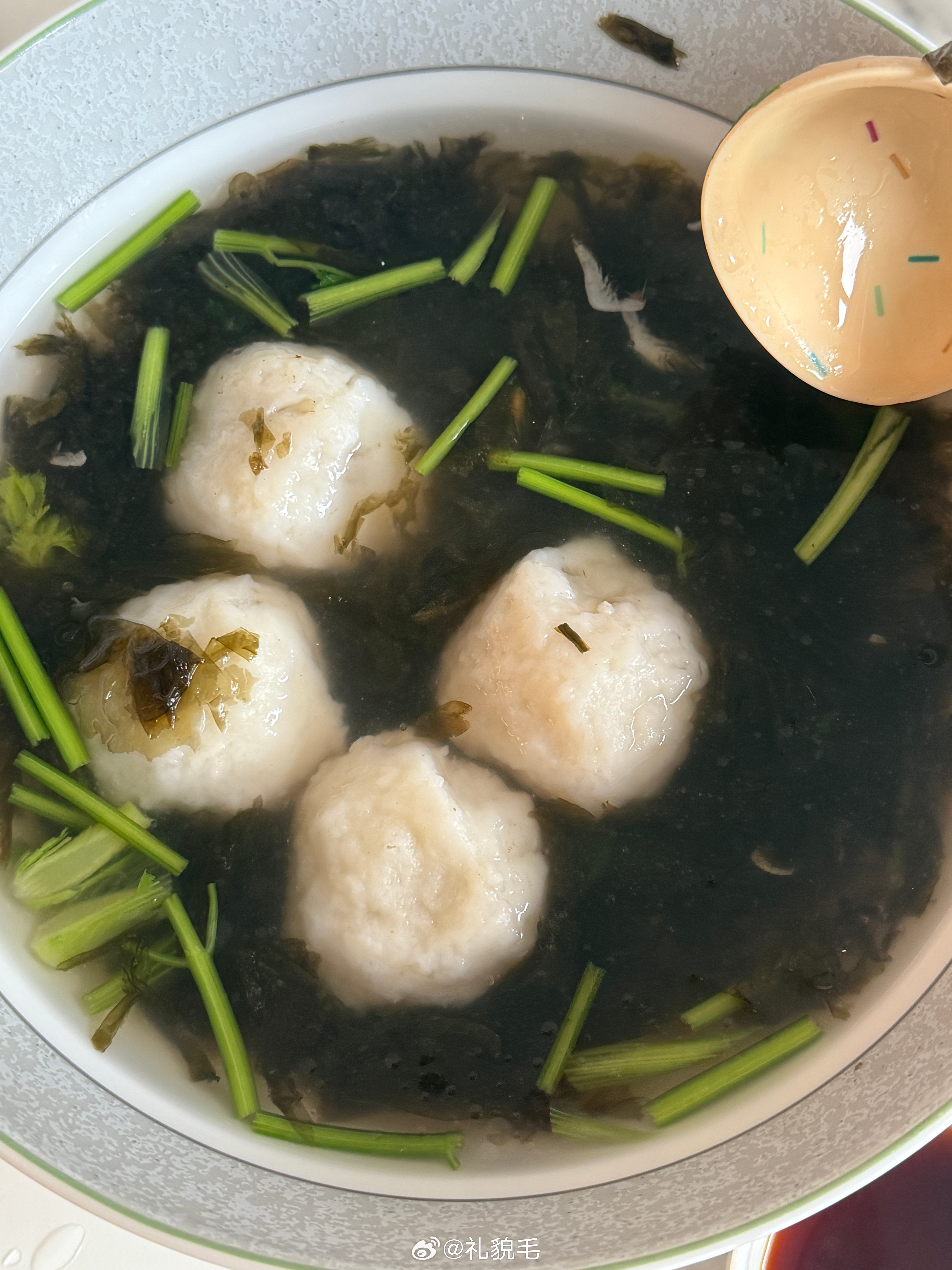 吃饭了今天阿姨进化了,居然煮了五个鱼丸(阿姨自己的捞走了),终于每个人都可以吃到