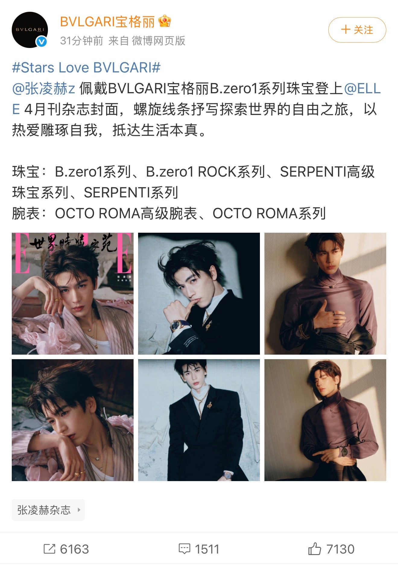 许闯拍的张凌赫张凌赫杂志张凌赫的杂志销量 宝格丽、兰蔻、Lee 给张凌赫推的五大Elle,三个品牌都出来认领,销售额一个半小时破1230w了,时尚表现力和粉丝氪金都牛的,很受大牌喜爱的凌帝。