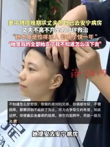 生死面前的抉择总揪动人心。患病妻子主动提出安宁疗护的心愿。深爱妻子的丈夫满含不舍。世间最痛的离别莫过于此。 (个人观点仅供参考,无任何不良引导) 晚期肺癌带来的折磨远超常人想象。持续化疗摧残着妻子的身体。剧烈疼痛与难忍呕吐日日缠绕。往日鲜活的模样被病痛消磨殆尽。每一次呼吸都带着煎熬。每一次治疗都增添苦楚。妻子不愿再承受无意义的救治。不愿在痛苦中耗尽最后的时光。她只想保有最后的体面安静走完余生。她轻声向丈夫诉说进入安宁病房的愿望。 丈夫听完话语瞬间泪湿眼眶。他紧紧攥住妻子瘦弱冰凉的手掌。心底的悲痛翻涌不止。他清楚妻子承受的万般折磨。他也懂妻子内心的真切期盼。放手的话语却始终无法说出口。他哽咽着回应妻子的请求。世间所有心愿他都愿意倾尽所有满足。唯独放手离别这件事他做不到。他害怕失去朝夕相伴的枕边人。他害怕再也触不到熟悉的温度。不舍的深情藏在每一滴泪水里。 平凡夫妻的对话藏着最动人的真情。爱到极致是不舍。爱到深处亦是成全。安宁疗护从不是放弃生命。是对生命最后的尊重与呵护。是让离别少一分痛苦多一分温暖。 生命终有尽头。陪伴与懂得胜过一切。珍惜眼前相伴的时光。尊重生命最后的选择。让爱与体面伴随人生落幕。便是对至亲最好的守护。