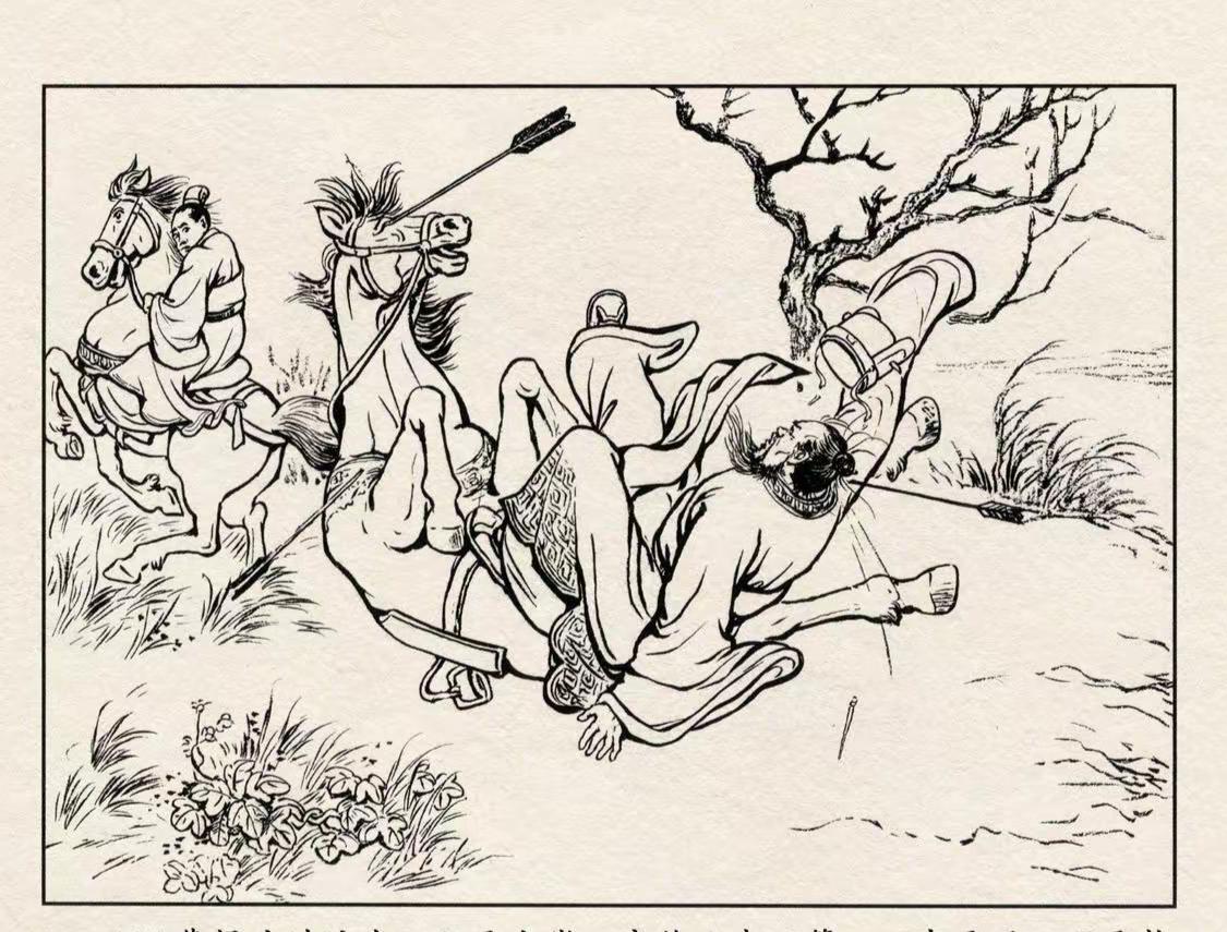 三国演义连环画:这位枭雄是谁?被敌兵劫寨之后飞马奔逃!战马中了三箭还能疾驰,结果最后一箭射中马眼这才趴窝了