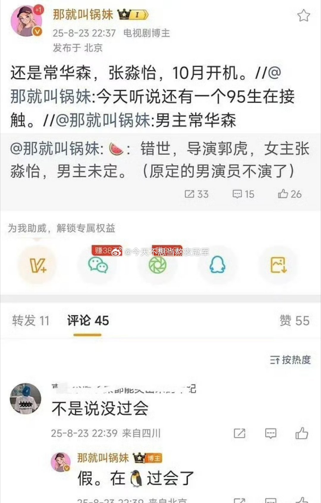 🍉🍉鹅仙侠《错世》男主从常华森传到敖瑞鹏这里了,女主张淼怡。导演原定郭虎,现