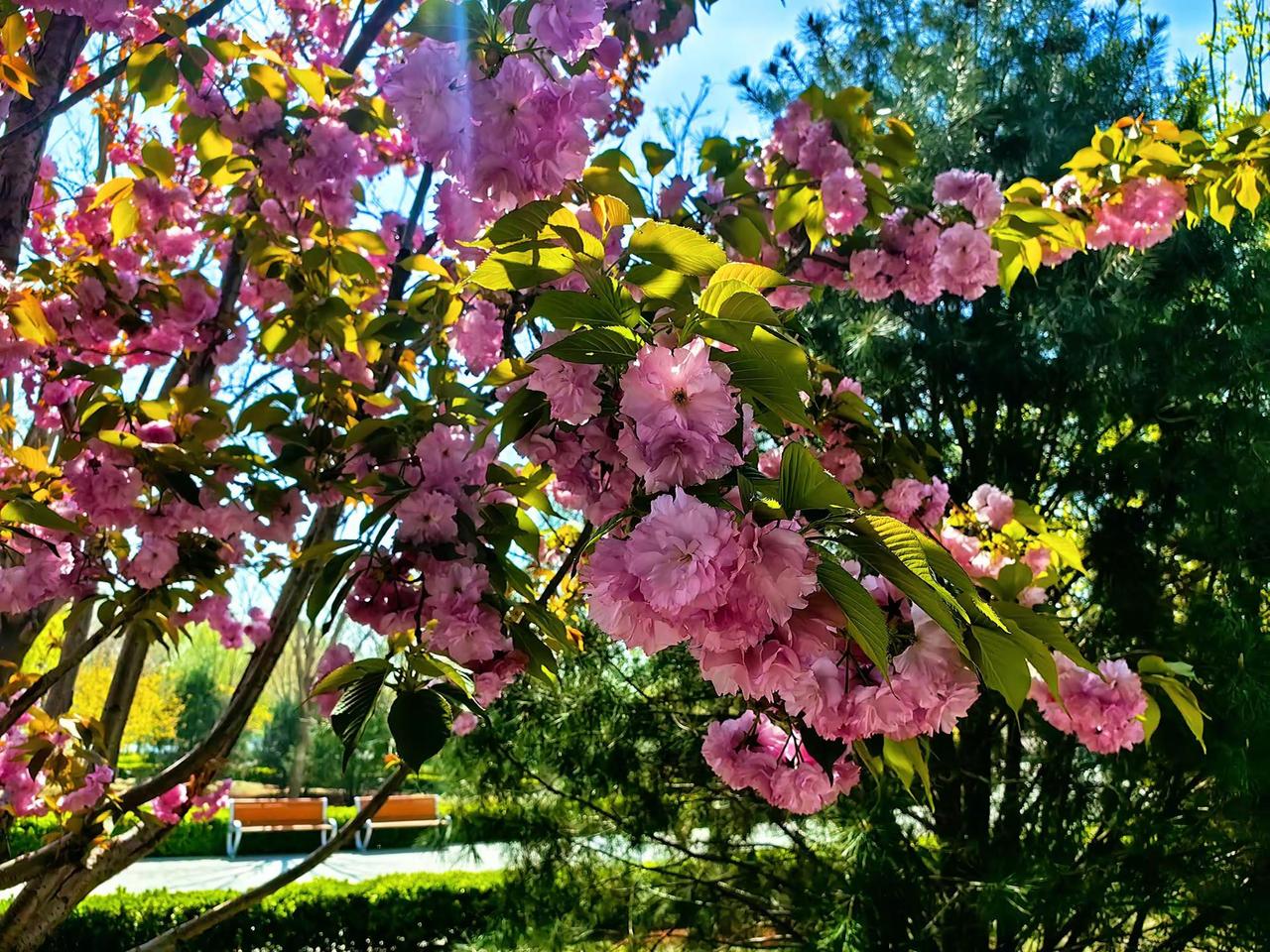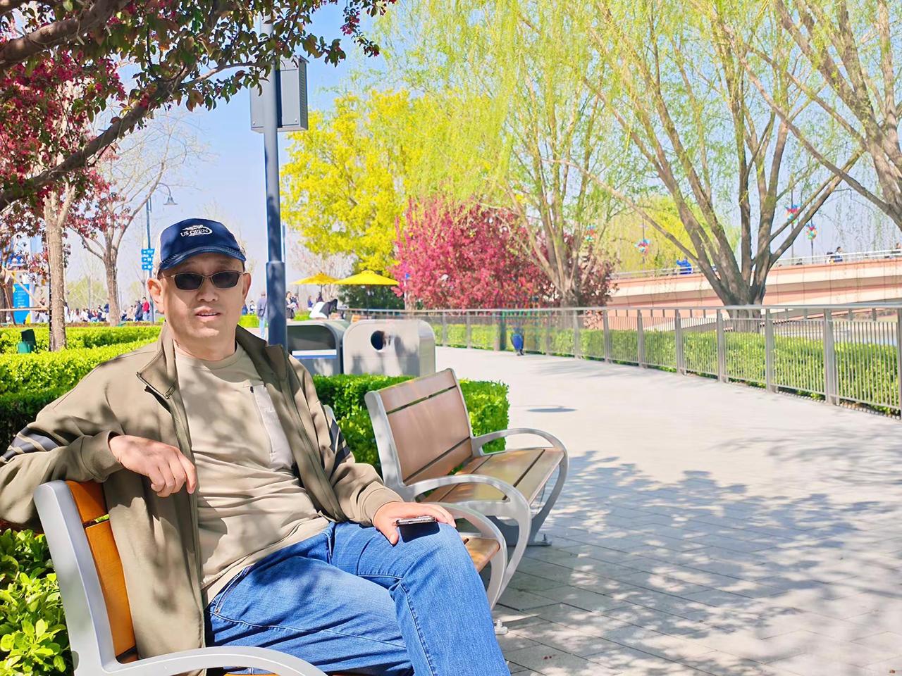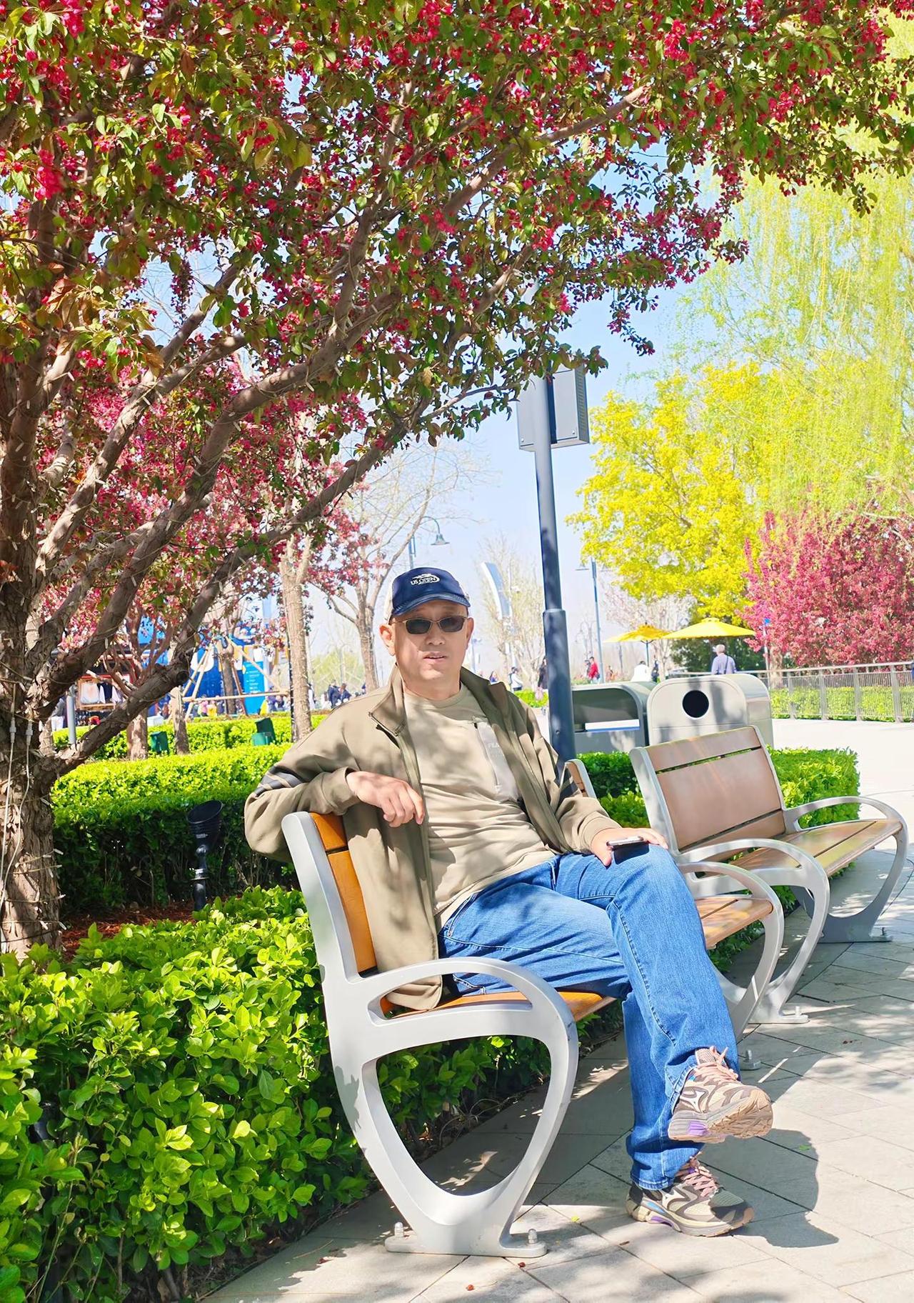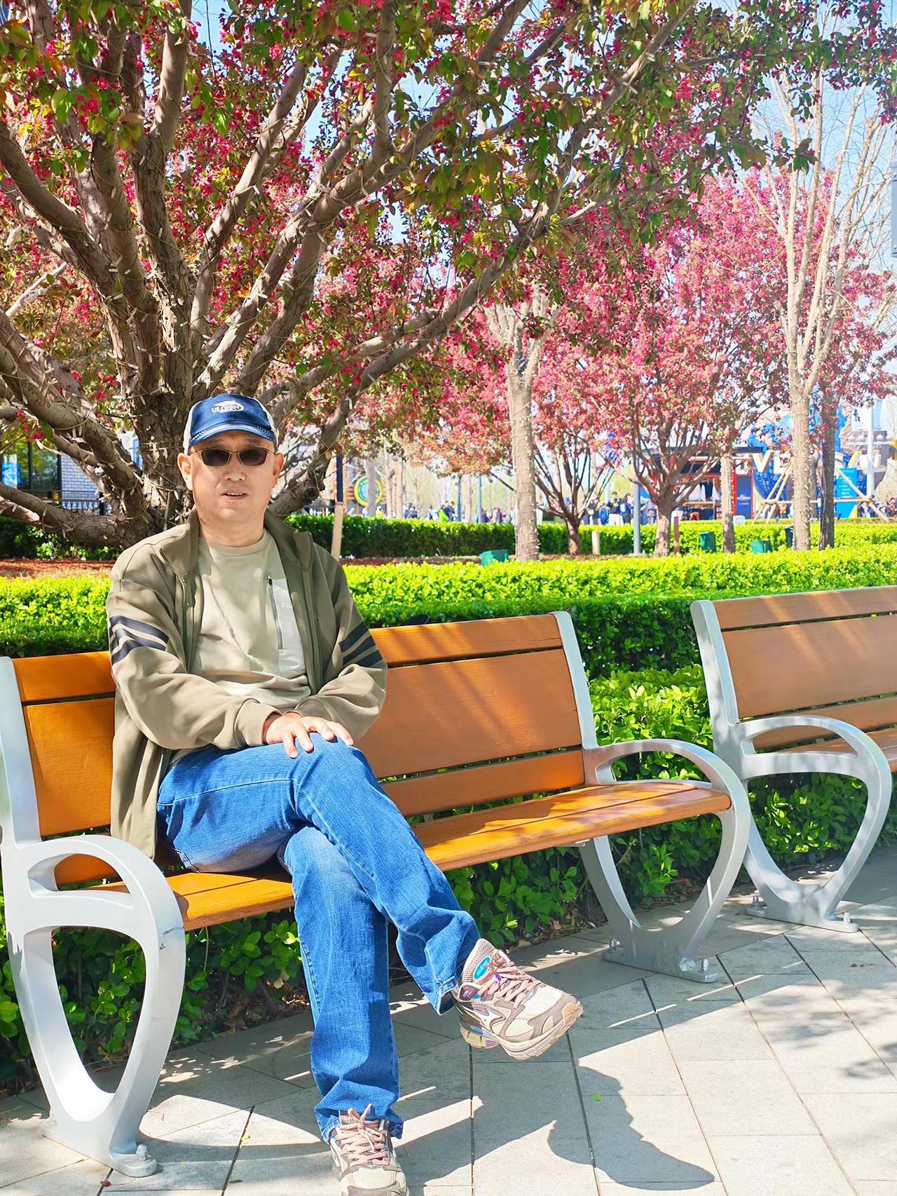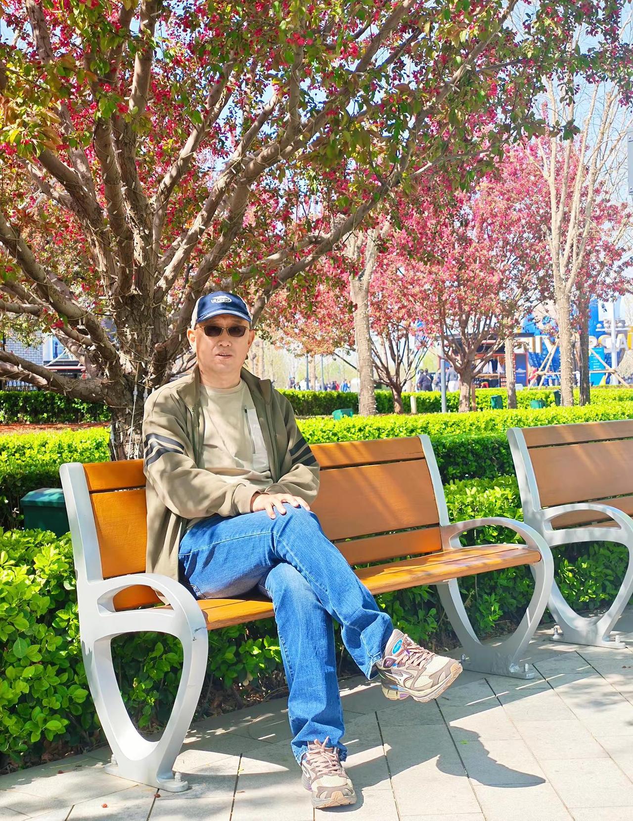 户外穿搭show 户外休闲男士 潮叔 男户外休闲 粉色樱花树枝繁叶茂