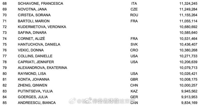 WTA更新生涯总奖金榜,郑钦文凭借IW赛事奖金突破1000万美元,成为...