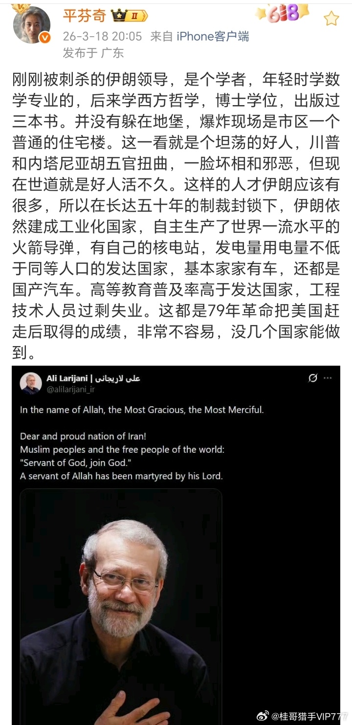 桂哥评:伊朗🇮🇷人民一定前赴后继!坚定反抗侵略!最后的胜利一定属于伊朗🇮🇷人民!正义必胜!