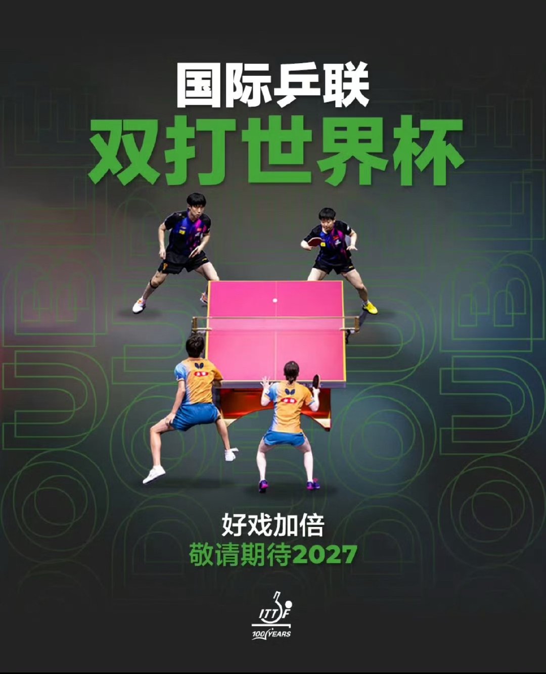 乒乓球双打也要有大满贯了 国际乒联官宣双打世界杯2027开赛,双打大满贯时代开启