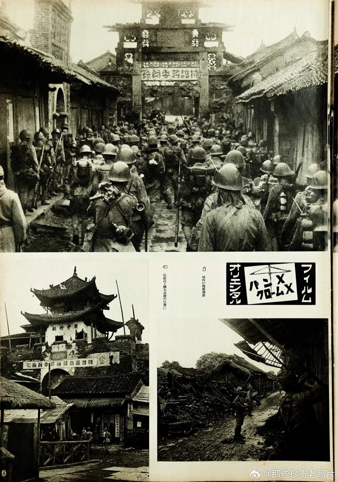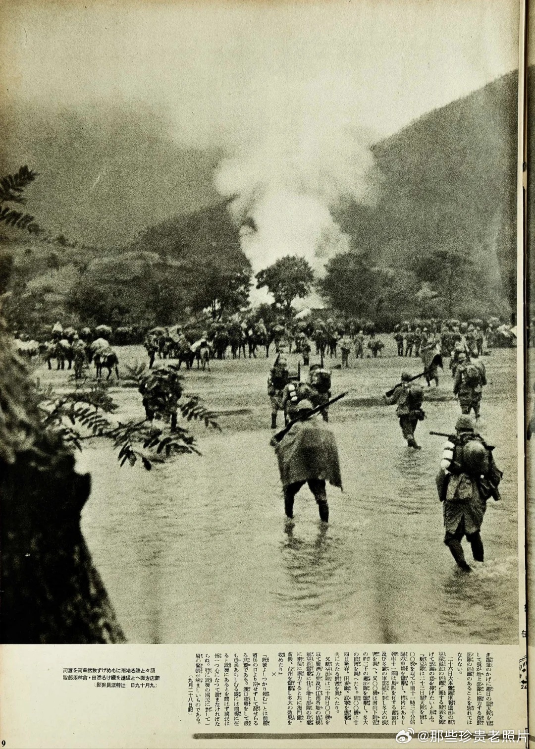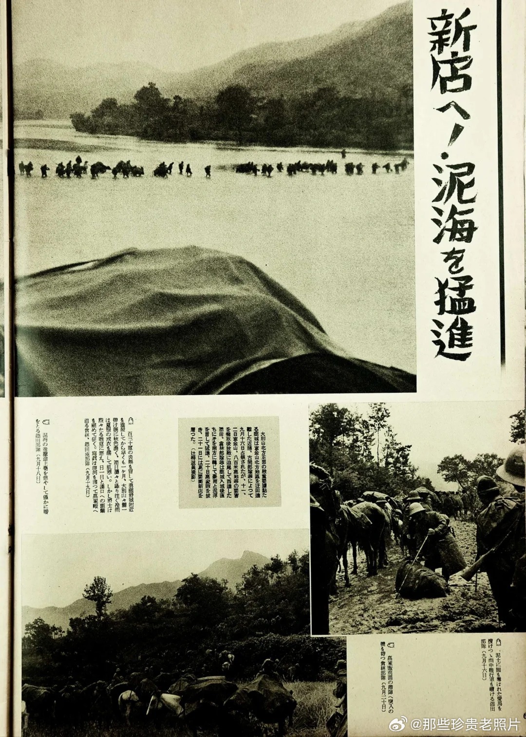 日军画报中的侵略武汉:占领光州、逼近信阳此为日本内宣杂志日中战线写真/日中战线写真第六十四报1938年10月12日出版民国二十七年十月十二日出版昭和十三年十月十二日出版封面:庐山南麓山顶开火的日军重机枪。图二:光州城内巷战的日军部队。(九月十七日)图三:攻略大别山北麓要冲光州县城图四:“扫荡”城内残敌图五:新店——泥海中猛进(九月下旬)图六:泥泞的大雨中燃烧植物取暖的日军图七:战局展望“京汉线进逼信阳”图八:九月十九日在冷雨中渡河向信阳进发的日军。