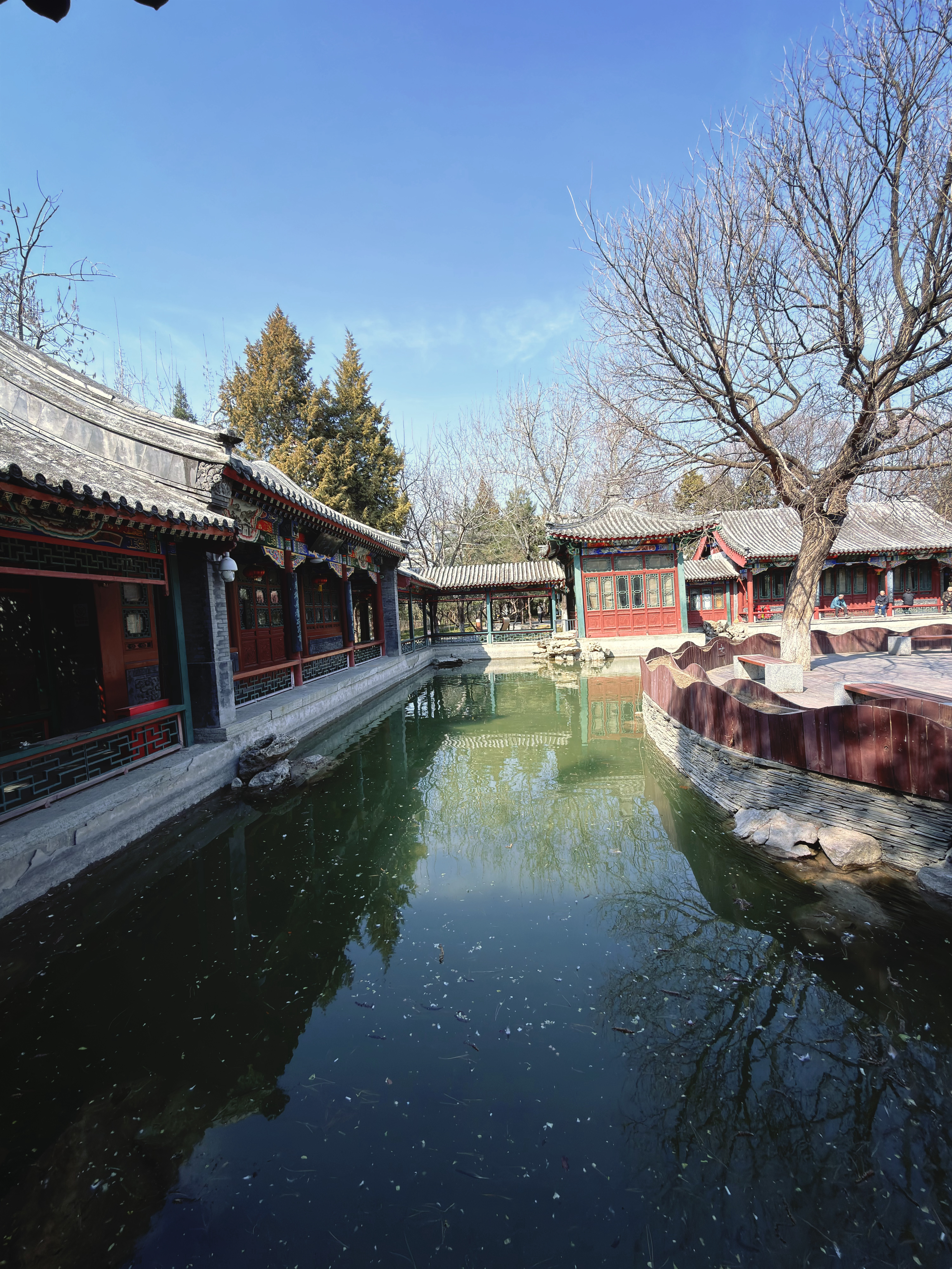 公园里都是晒太阳的老年人,有打太极的,有练唱歌的,有打麻将的,有看着鱼发呆的~