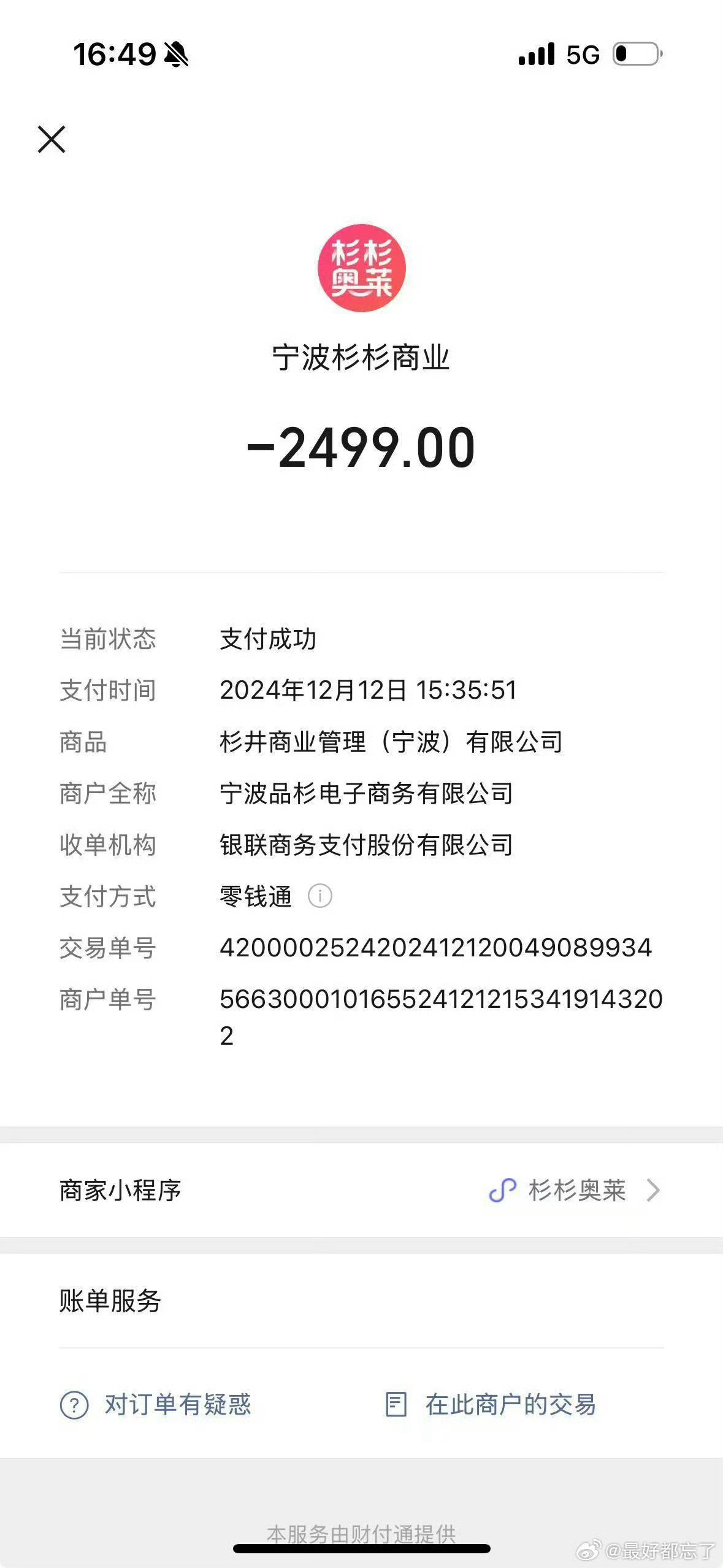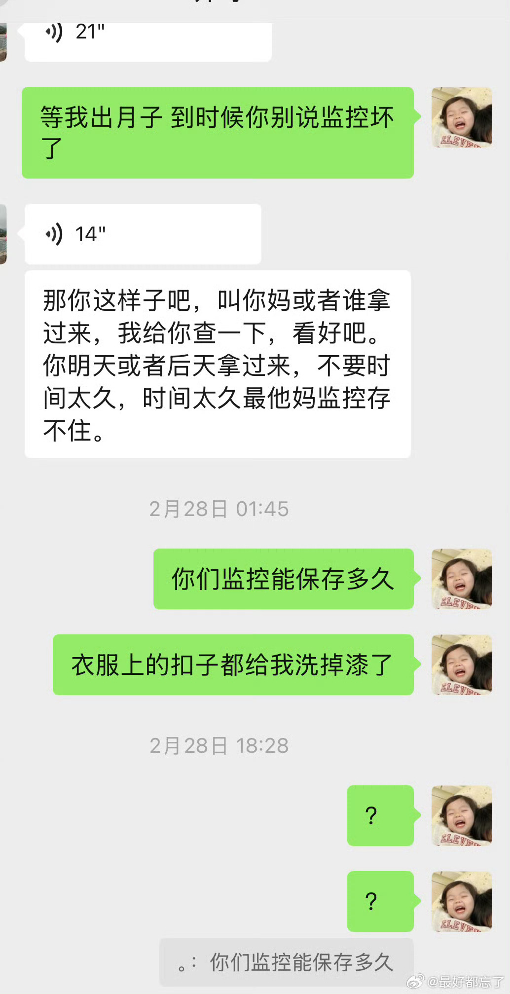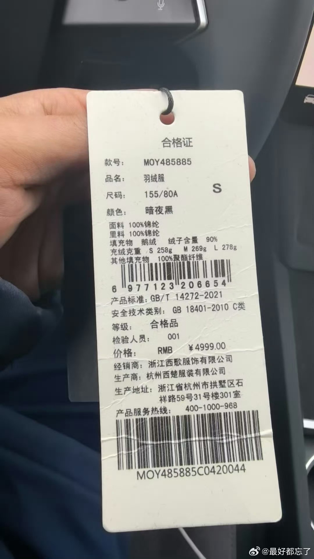 网友:最好都忘了投稿:普通百姓如何维权?本人于2026年2月3日在宁波象山洁丰干洗(文峰小区店)干洗了一件黑色长款羽绒服,2月13日取回,取衣时未检查。由于本人2月10之后一直在坐月子取回后也一直没机会穿。2月28日把衣服从袋子里拿出来发现衣服破损并有明显缝补痕迹,随后找商家理论(图2-4),负责人说不可能,就算洗破了店里也不可能给我补成这样(不承认),让我把衣服拿过去看一下,再找监控还原一下事发情况。3月4日我让亲属把衣服拿去干洗店,店内人员还是不承认,我说要报警,后面他们承认了,说是临时工操作的他们不知情推卸责任。他们给出了赔偿方案,把衣服拿去裁缝店重新缝补,我不同意,2499买的羽绒服(图6吊牌,图7消费凭证),就穿过几次,换成是你们会同意嘛?我又在微信上联系了负责人,他态度比较拽让我直接找第三方。最后我打了12315维权,象山市监协商了5天最后还是给我这么个结果(图8-9)