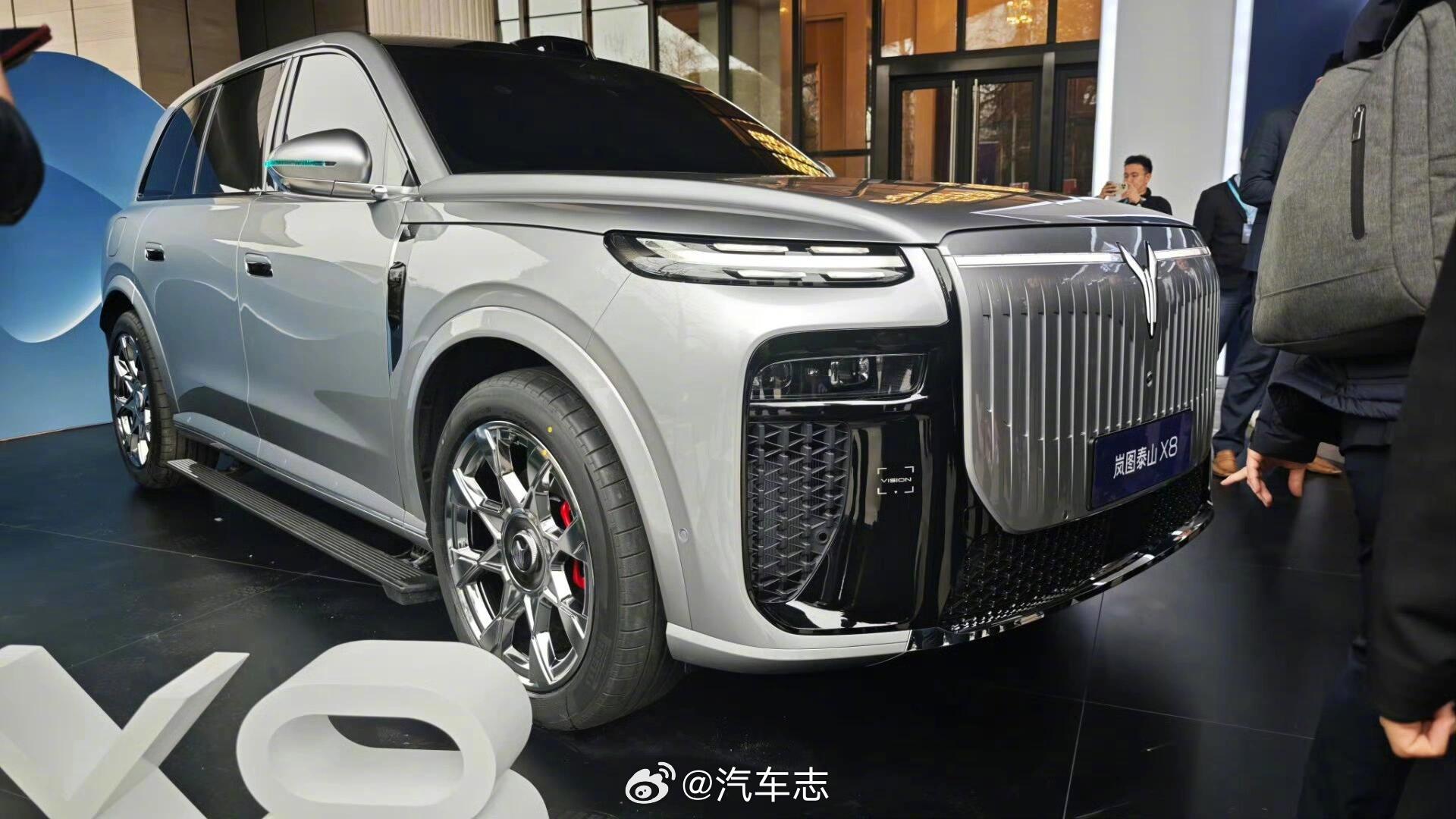 岚图泰山X8实车曝光,运动感强很多,黑武士版本应该会更帅。参考一下,揽运和揽胜的