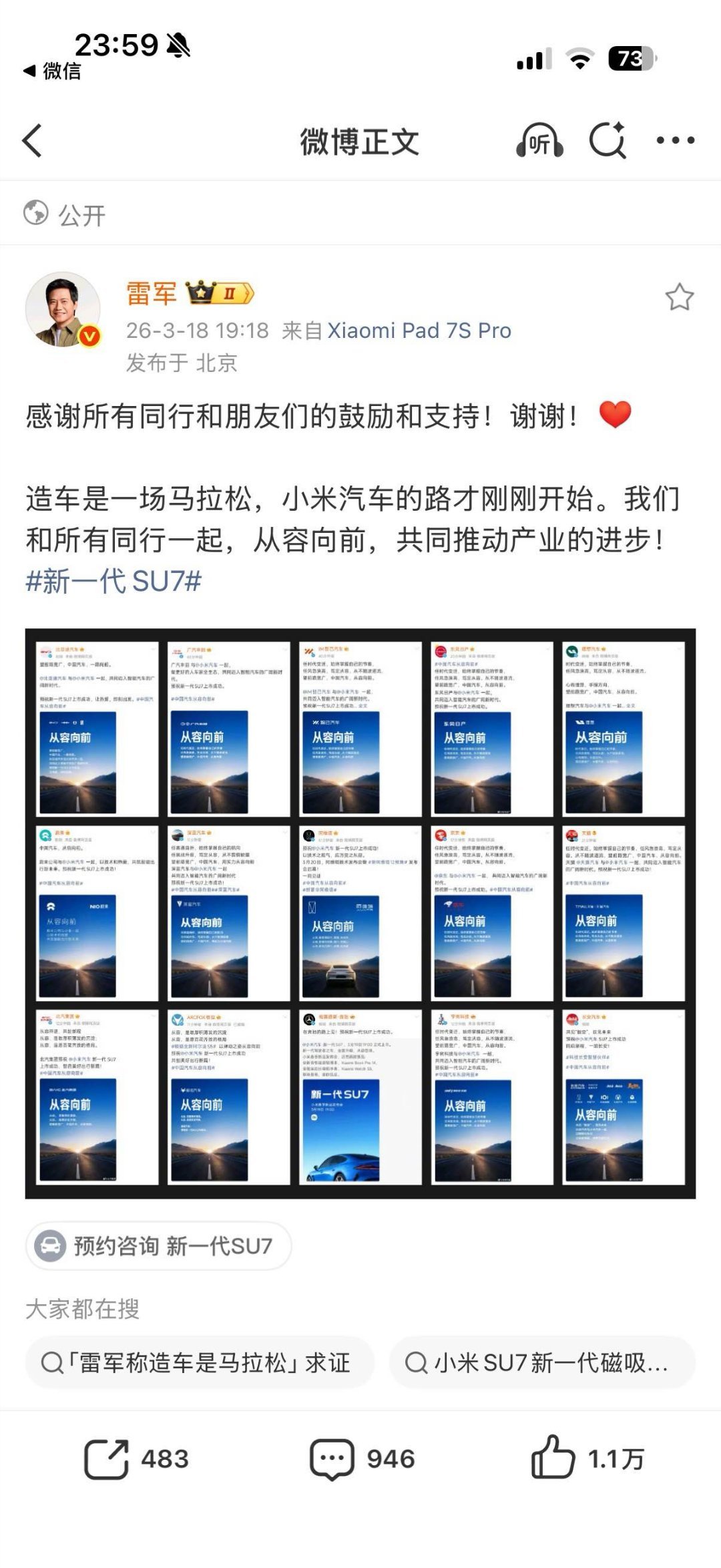 广汽丰田给小米SU7送祝福,小米汽车直接点名回祝全新铂智7,这一次啊,是把铂智7的“科技价值感”拉满了!这波互动,不止是赚流量,更是把铂智7抬进了“科技汽车”的核心讨论语境里。早在2025年科技日,广汽丰田就和小米达成了深度合作,铂智7能和小米平板、智能对讲机、车载手机支架、香氛系统等设备互联互通,妥妥是传统车企拥抱科技生态的教科书级案例!合资车放下身段,玩起了智能生态,这波转型,还会有更多惊喜!小米官微预祝铂智7上市成功