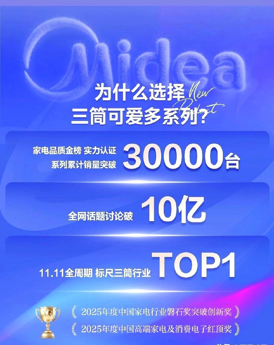 家里洗衣机是不是总让你头疼? 袜子内衣不敢混洗,分批洗又太费时间,还有那南方回南天,衣服晾一周都不干! 说实话,以前咱以为洗衣机的技术也就那样了,海尔、格力那些大牌子把路都堵死了。 结果你猜怎么着? 美的最近出了个“可爱多”三筒洗衣机,直接让行业炸锅了! 它长得挺有意思,一大两小三个筒。 大筒专门对付外套床单,左边小筒带个杀菌小蓝棒,专治袜子;右边小筒配个小粉棒,精洗内衣,说是医护级洁净。 三个筒各自有独立的电机和风道,同时洗也不会串味。 这下好了,老妈再也不用唠叨混洗不卫生了。 最戳我的是,它还能洗烘一体,烘干特别温和,连羊毛真丝都能往里扔。 搭配智能投放洗涤剂,洗得干净还省心,残留也少。 这下南方朋友再也不怕梅雨季衣服潮乎乎了。 说白了,这就是把“分开洗”和“一起洗”的矛盾给解决了。 所以,你家那台老洗衣机,是不是也该考虑退休了?