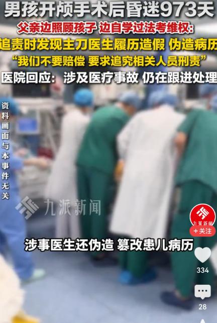 江苏无锡,16岁男孩做开颅手术后,昏迷973天。父亲追责,发现主刀医生履历造假、篡改病历。13年没碰书本的他,自学通过司法考:我不要赔偿 ,就要他坐牢。 2023年7月19日,龚先生16岁的儿子,因为脑部查出问题,要在儿童医院做开颅手术,为了给孩子找个靠谱的医生,他们托遍了身边所有亲戚朋友,到处打听哪个专家厉害。 后来有人给他们推荐了医院里一位“资深专家”,说这人毕业于名牌大学,还有整整二十年的开颅手术经验。 手术前一天,龚先生还特意找到这位专家,反复叮嘱,专家拍着胸脯说“放心,小手术,保证没问题”,这话让他们彻底放了心,想着等孩子术后休养好,就能重新回到学校上课,像别的孩子一样正常生活。 手术那天,龚先生和妻子在手术室外整整站了六个多小时,眼睛死死盯着手术室的灯,一遍遍祈祷。 终于,灯灭了,医生出来说“手术很顺利”,夫妻俩激动得差点哭出来,可当他们看到被推出来的儿子时,瞬间傻了眼——孩子浑身插满管子,闭着眼睛,不管怎么喊,都没有一点反应。 医生说这是术后正常反应,过几天就会醒,可这一等,就是一天又一天,龚先生心里的不安越来越强烈。 他不相信,一场“顺利”的手术,能把一个好好的孩子变成这样。 有一天,他翻出孩子的手术记录和病历,打算再仔细看看,这一看,就发现了不对劲。 他明明记得孩子是早上8点进的手术室,可病历上写的手术开始时间却是上午10点;还有术中用药剂量,他当初特意问过医生,可病历上的数字,跟医生说的根本对不上。 龚先生心里咯噔一下,赶紧去查那位主刀专家的底细。 他按照医院公示的名校信息去搜,翻遍了学校的官网、毕业生名录,根本找不到这位专家的名字;又去查当地卫健委的医生注册信息,才发现这位专家的实际从业年限,连十年都不到,压根没有独立开展开颅手术的资格。 得知真相的那一刻,龚先生气得浑身发抖,他拿着病历,冲到医院办公室找说法,可医院工作人员要么避而不见,要么就说“不清楚情况”,涉事医生更是直接躲了起来,连面都不肯露。 有人悄悄找到龚先生,劝他别太较真,说医院愿意私下赔偿,多要些钱,以后也好长期照顾孩子。可龚先生想都没想就拒绝了,他红着眼说:“多少钱都换不回我健康的儿子,我不要赔偿,我就要他坐牢,就要让他为自己的所作所为,付出该有的代价!” 可龚先生心里清楚,自己就是个普通老百姓,初中毕业就出来打拼,23年没碰过书本,连最基本的法律条文都看不懂,想要靠自己打赢这场官司,难如登天。 可龚先生没退缩,他看着病床上毫无反应的儿子,心里只有一个念头:一定要为儿子讨回公道。 从那天起,医院的病床旁,就成了他的自习室。 白天,他趁着孩子休息的间隙,就趴在床边一点点啃书本,遇到不认识的字,就用手机查拼音; 晚上,等孩子各项体征稳定,他就着病房里微弱的灯光,背法条、刷习题,记不住的就写在小纸条上。 有好几次,他看着病床上的儿子,忍不住红了眼眶,觉得自己快要撑不下去了,可一想到孩子还在等他讨回公道,他就又咬着牙,拿起书本继续学。 功夫不负有心人,2025年,龚先生一次性通过了国家统一法律职业资格考试。 当天,龚先生整理好所有证据——病历对比件、医生履历造假的截图、卫健委的调查回执,装在一个厚厚的文件袋里,正式报了警,坚决要求追究涉事医生和医院的刑事责任。 现在,龚先生依旧每天守在儿子的病床前,一边照顾孩子,一边等待相关部门的处理结果。 他说,不管等多久,他都会一直等下去,哪怕耗一辈子,也要给儿子讨回一个公道,也要让那个造假的医生,受到应有的惩罚。 他也想提醒所有家长,带孩子看病的时候,一定要多留个心眼,别轻易相信所谓的“专家履历”,多核实、多打听,别让自己的孩子,再遭遇这样的悲剧。 说实话,谁看了龚先生的经历,都会心疼。一个普通的父亲,为了昏迷的儿子,23年未碰书本,硬生生啃下了最难的法考,这份父爱,既沉重又伟大。 我们也盼着,正义能早日到来,盼着那个昏迷了973天的孩子,能早日醒来,能听到父亲为他讨回公道的好消息。