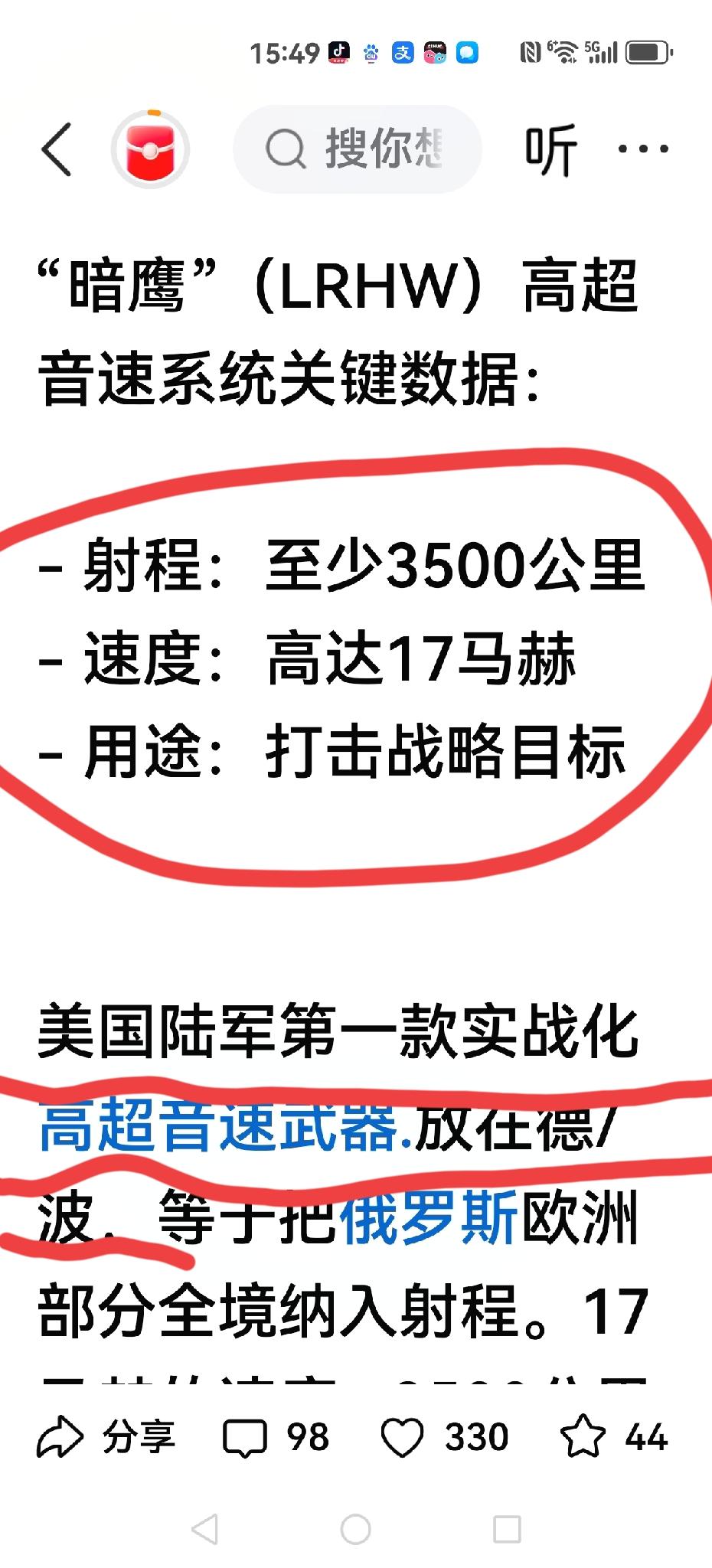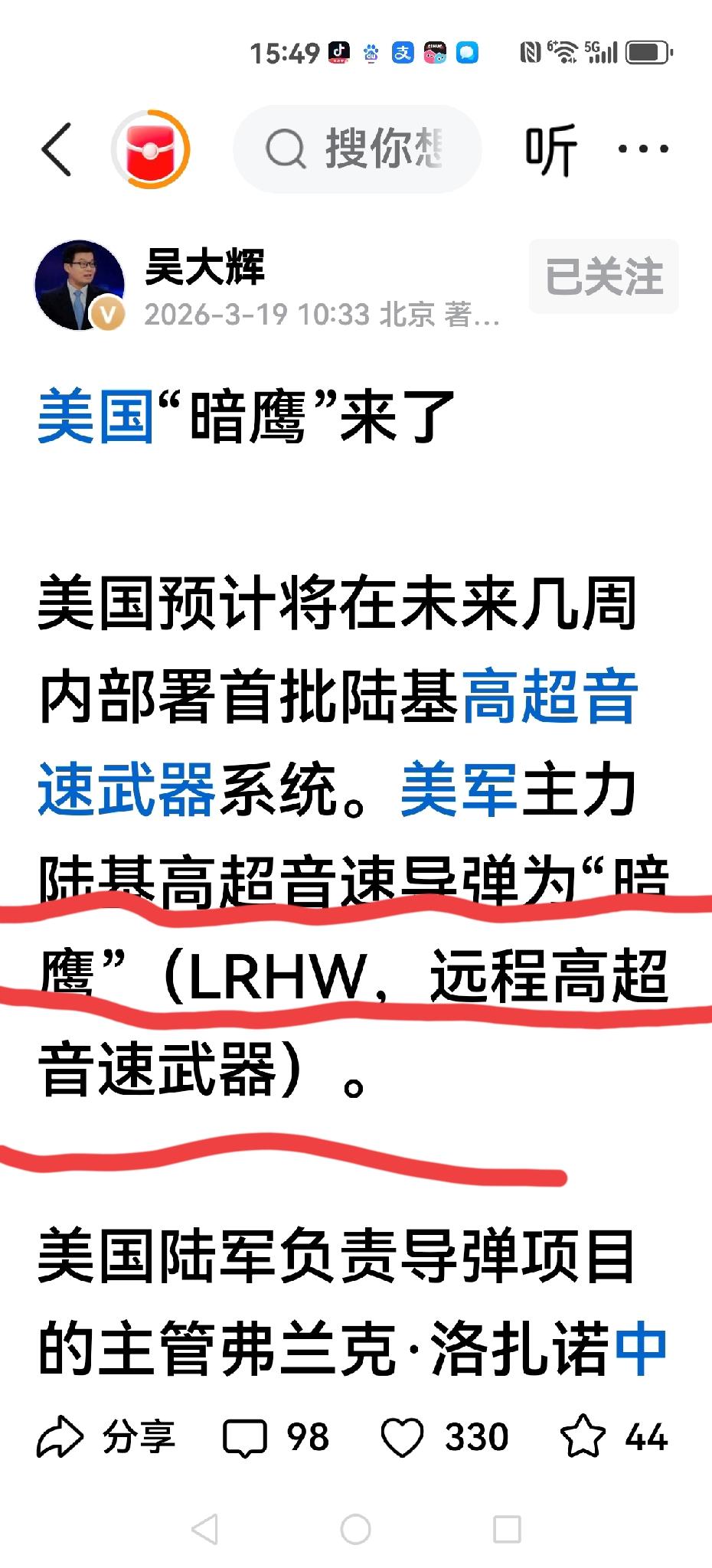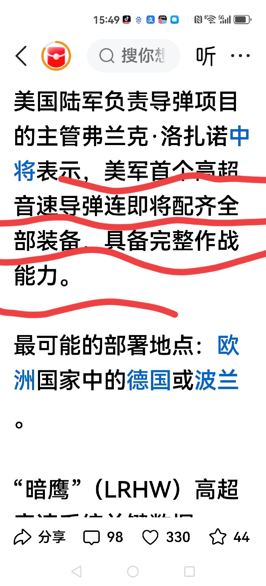 【美国“暗鹰”来了,张维为打脸】 张维为在节目连线里说:美国只要敢在弯弯,南海,日本海动一动,他就不是超级大国,因为它和我们存在武器代差。 我们有超音速导弹,他们没有怎么打? 美国“暗鹰”来了,就是超音速导弹,主要投放在德和波,防备俄罗斯。 张口就来,武器迭代差不知怎么说出口?