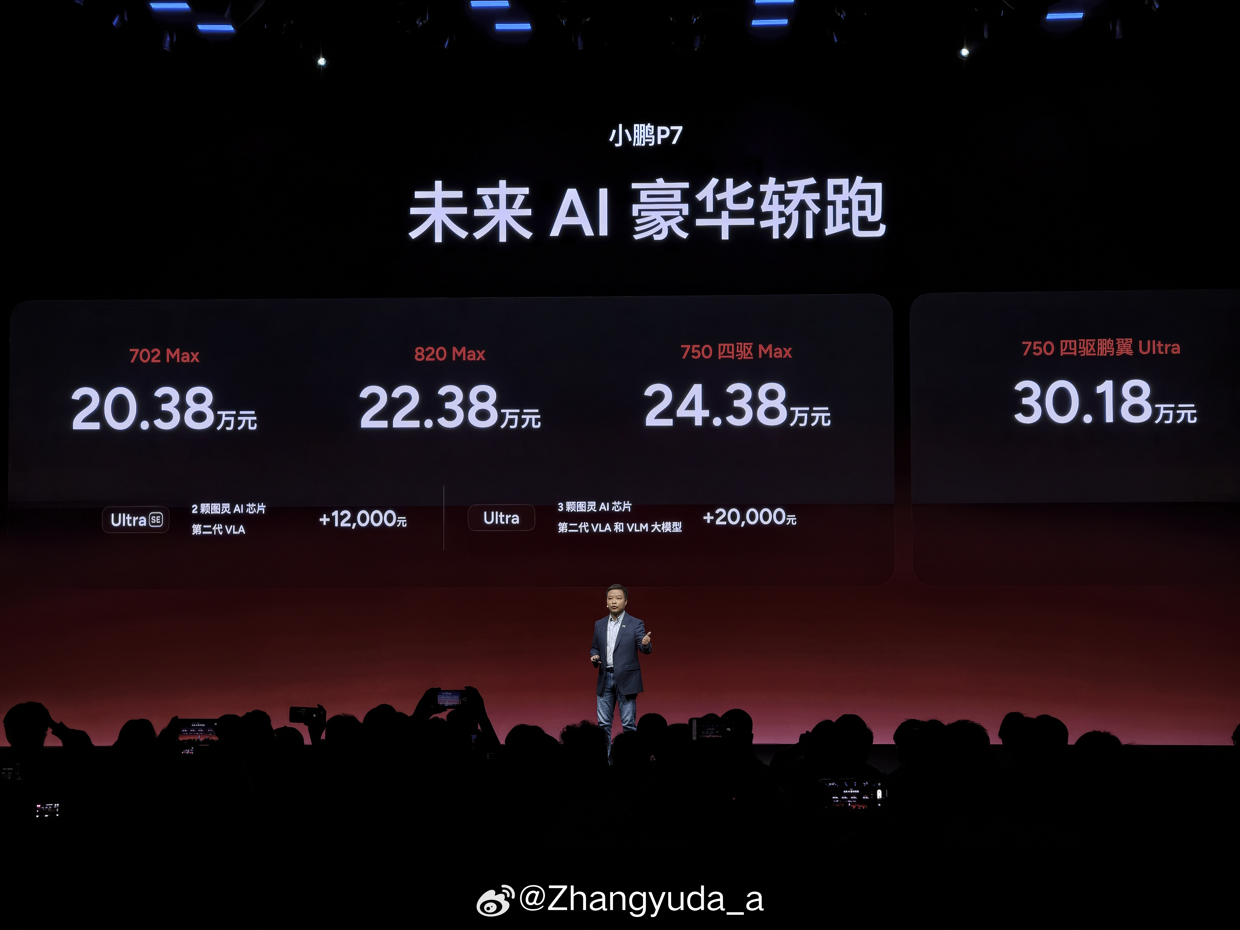 小鹏新P7上市了,702 Max版 20.38万元、820 Max版 22.38万元、750 四驱 Max版24.38万元、750 四驱鹏翼 Ultra版 30.18万元在Max版基础上,加1.2万元即可升级为搭载2颗图灵AI芯片+第二代VLA的Ultra SE、加2万元可升级为搭载3颗图灵AI芯片+第二代VLA和VLM大模型的Ultra。