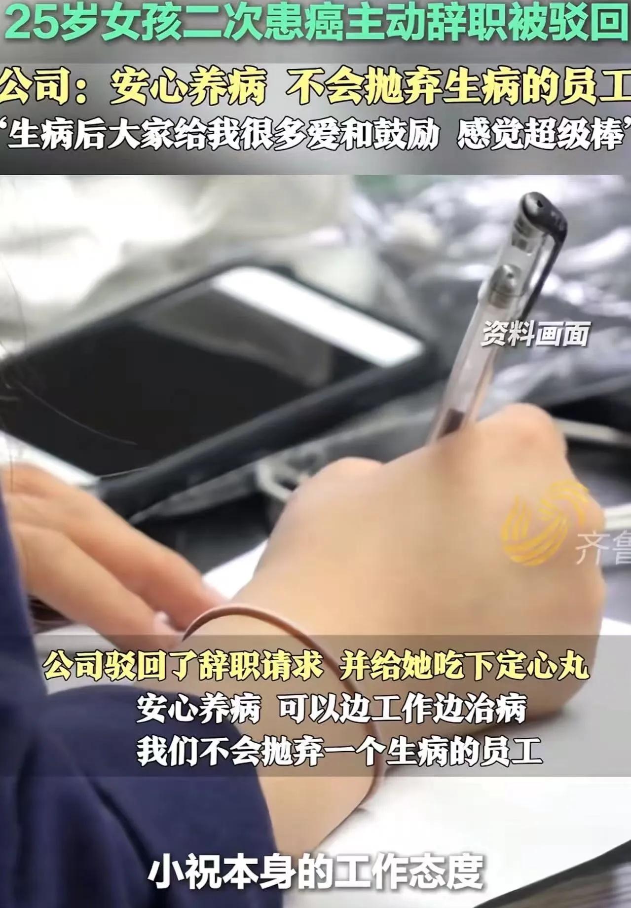 “领导,我得了癌症想辞职” 25岁女孩提出申请,老板一句话让她泪崩! 祝乙琪的人生,真可以说是“地狱模式”开局。 5岁那年,她被查出患上了肾母细胞瘤,切除了右肾,需要每月到医院复查;11岁时,父亲撒手人寰,留下年幼的弟弟和哭干眼泪的母亲。家里穷得叮当响,可这姑娘打零工、赚学费和医药费,硬是咬着牙,一路拼到了大学毕业。 毕业后,她在一家公司做文员,只想撑起这个摇摇欲坠的家。 可麻绳专挑细处断,厄运专找苦命人。 2024年5月,祝乙琪突然腹痛难忍,去医院一查,晴天霹雳:直肠癌晚期,癌细胞已经转移! 医生这话一出,祝乙琪的天都塌了。她不怕死,她怕的是自己走了,老母亲和还没长大的弟弟怎么办? 经过一夜的痛哭和挣扎,这个善良的姑娘做了一个决定:辞职。她想着,自己接下来要长期住院、手术,不仅干不了活,还得占着公司的坑位,不能连累大家。 第二天,她红着眼眶敲开了领导办公室的门,递上了辞呈。 “领导,我……我得了重病,没法上班了,不想拖累公司。” 没想到,领导看完诊断书,直接把辞呈推了回来,语气坚定:“小祝,你的辞职申请,公司驳回!” 祝乙琪愣住了,不明白领导什么意思。 领导站起身,拍了拍她的肩膀:“在公司眼里,你首先是我们的家人,其次才是员工。家里人生病了,哪有把家人往外推的道理?” 紧接着,让人泪目的一幕发生了。领导当场发动全公司员工捐款。 消息一出,同事们二话不说,你一百、我五百,爱心像潮水一样涌来。短短时间,10万元善款就凑齐了,直接塞到了祝乙琪手里。 领导握着她的手说:“这钱拿着治病!以后你每个月只需工作20天,剩下10天专门用来治疗和休息。为了方便你,公司把你调到了离医院最近的办公区,岗位也换成了轻松的活儿。你就安心治病,公司养你!” 祝乙琪捧着那沉甸甸的10万块钱,眼泪止不住地流。 这事儿传到网上后,评论区直接炸了锅。 有网友感叹:“看哭了!我出车祸骨折需要修养半年,公司领导找各种借口把我开除了。同样是公司,差别怎么就这么大呢?” 也有网友心酸地说:“我查出患癌后,也是不好意思老请病假,提出辞职,结果公司一秒钟都没等,直接秒批!那一刻心都凉了。” 还有网友说:“我生完孩子回来岗位都没了,看到这个新闻热泪盈眶。希望未来的企业能和员工平等相处,而不是冷冰冰的算计!” 从法律角度来说,祝乙琪主动提出辞职,公司完全可以批准,这合法合规,没有任何问题。但这家公司的操作,堪称“教科书级别”的反向操作。 根据《劳动合同法》规定,员工在规定的医疗期内,企业是不得解除劳动合同的。但这是对企业的约束,如果员工主动辞职,法律并不禁止。可这家公司不仅没有顺水推舟批准辞职,反而主动留下她、调整岗位、减少工时,甚至发动全员捐款——这已经不是法律要求的事了,这是人心换人心的事。 很多公司借调岗之名行逼退之实,但这家公司是为了照顾病人而调岗,这是实实在在的帮扶,而非套路。从法律上讲,他们做得远超及格线;从人情上讲,他们交出了满分答卷。 有网友评论:“有这样的老板,员工谁不愿意卖命?这才是真正的‘双向奔赴’!其他员工看到了,心里肯定想:在这干,值了!” 这话说到点子上了。 很多老板和领导总抱怨现在的年轻人“躺平”、“没忠诚度”,可他们忘了问自己一句:你把员工当人看了吗?张口闭口就是“狼性文化”、“优胜劣汰”,员工生个大病恨不得立马切割,生怕多付一天工资。在他们眼里,员工只是报表上的成本,是用完即弃的电池。 可这家公司的老板用行动证明:人心都是肉长的,你为员工遮风挡雨,员工自然愿为你赴汤蹈火。 所谓的“忠诚度”,从来不是靠严苛的考勤和画饼画出来的,而是靠危难时刻的那一双援手换来的。短期看,公司损失了一个劳动力,还搭进去10万块和额外的管理成本。但长期看,他们收获的是什么?是全公司上下死心塌地的归属感!是外界口口相传的“金字招牌”!这种无形的资产,比任何广告费都值钱。 当其他公司在算计怎么克扣那三瓜两枣时,这家公司已经赢得了人心。 祝乙琪的故事,让人泪目,也让人深思。她5岁患病,11岁丧父,25岁又被判直肠癌晚期。命运对她,何曾有过一丝温柔?但在生命的至暗时刻,她遇到了一群愿意拉她一把的人。 哪怕她最后没能战胜病魔,这家公司也让她感受到了作为“人”的尊严和温暖。我们常说“善有善报”,这不是迷信,是社会运行的底层逻辑。一个有温度的企业,就像一盏灯,照亮了员工的路,也照亮了自己的前程。 祝乙琪现在怎么样了?报道里没说。但可以确定的是,她不再是一个人孤军奋战。她的身后,站着一群愿意拉她一把的同事,站着一家愿意“养她”的公司。 这事儿你怎么看?你遇到过这样的“神仙公司”吗?欢迎在评论区聊聊你的经历。