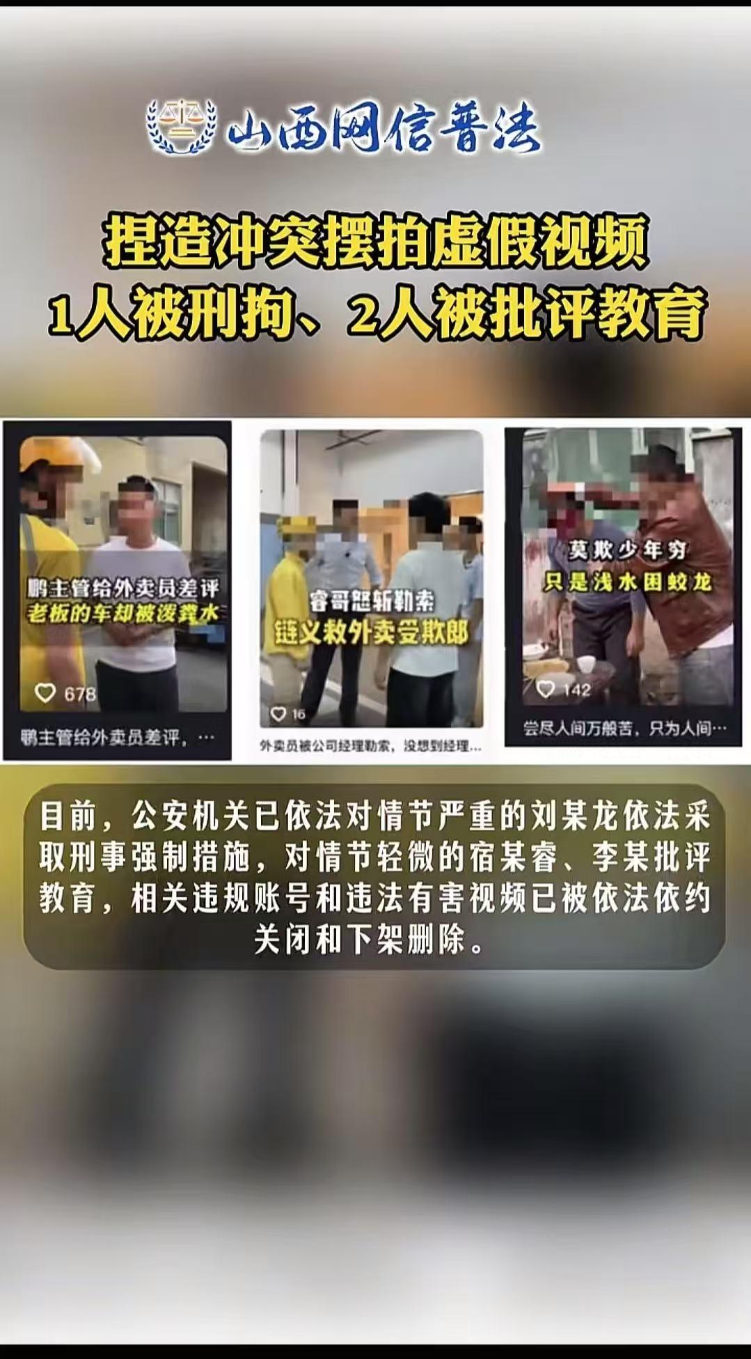平时课余时间也会勤工俭学,在学校兼职送外卖,就是这段时间的兼职经历,让我深深体会到骑手的不易。 然而前阵子网上突然出现好多骑手吵架的视频,身边同学刷到后还问我,是不是骑手都这么暴躁,我听了特别委屈,明明我们都在踏踏实实送餐,怎么就被说得那么不堪。 直到J 方通报出来,我才松了口气,原来那些视频全是假的,是三个三十岁左右的男人摆拍的。他们为了涨粉、卖课,冒充退役军人,故意演绎冲突戏码,肆意抹黑我们骑手群体。他们这么做,让我们这些兼职骑手平白受误解,也让很多人对骑手产生了偏见。还好公安机关严厉查处,给了我们一个公道。假的都是假的,哪有那么多为难人的呢?希望大家多看看我们的真实付出,别被虚假视频误导。