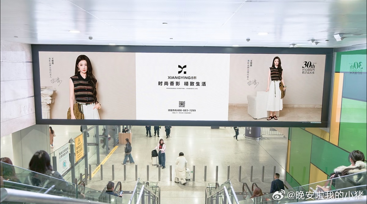 王楚然香影品牌方安排了地广大屏,全球代言人好有实力
