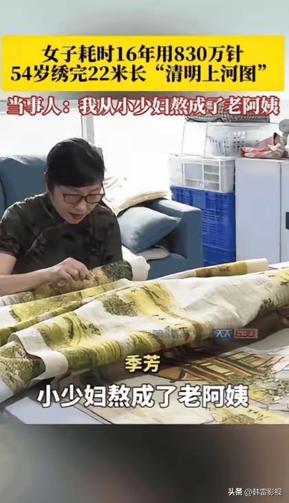只要你思想不滑坡,办法总比困难多! 你要是热爱生活,生活也会热爱你 重庆这女子就是很好的案例! 16年,人生能有几个16年啊,她就这么花在一幅刺绣上。830万针,这得是多强的毅力和耐心,想想都头皮发麻。从小少妇变成老阿姨,这其中的坚持太让人动容。 《清明上河图》本就是传世名画,她这刺绣版的更是独一无二。这要是拿去卖,肯定价值不菲。说不定真能实现财富自由,后半辈子衣食无忧。不过,这倾注了她16年心血的作品,卖不卖还真不好说。也许她会留着当作自己青春和努力的见证,毕竟这背后的故事可比钱珍贵多了。